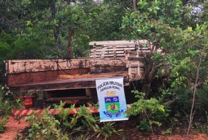 Em contato com o proprietário, este informou que na ocasião, o caminhão estava com uma carroceria tipo “boiadeiro” de cor branca, a qual, também foi localizada pelos policiais abandonada e danificada próxima ao local.