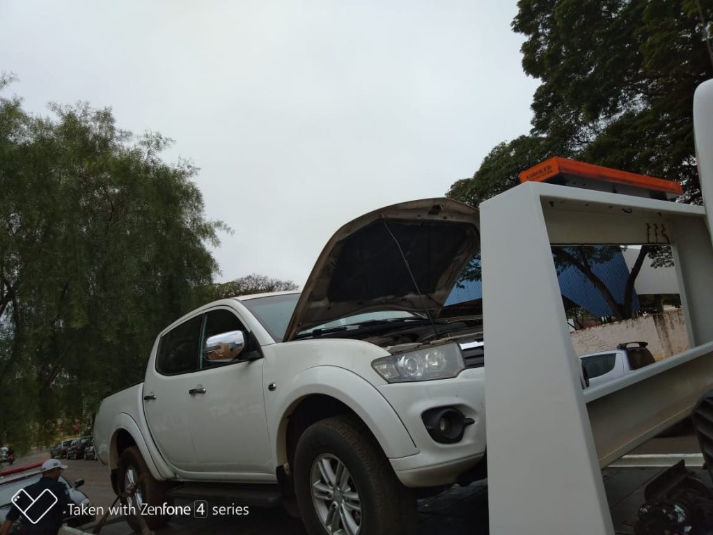 A equipe operacional de trânsito realizava fiscalização, quando deu ordem de parada ao condutor de um caminhão guincho que transportava na plataforma uma caminhonete com placas de Pouso Alegre-MG. O motorista relatou que foi contratado por um homem nesta manhã (02) para levar o veículo L.200 até a cidade de Dourados-MS por ter apresentado problemas no câmbio, segundo o contratante e que embarcou o veículo em um Hotel em Nova Andradina. Ainda segundo o condutor do guincho, o contratante não apresentou o documento do veículo e disse inicialmente que iria junto com o caminhão, porém no último momento resolveu ir com o um amigo que estava em um outro veículo com placas de Gloria de Dourados-MS e que estavam em companhia de uma mulher.