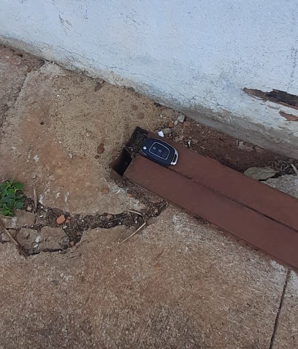 Feito contato com a vítima, ela se fez presente no local e reconheceu o veículo. A mesma o abriu e a equipe, sendo observada pela vítima, realizou uma busca no interior e porta malas do veículo. Sendo encontrado alguns objetos pessoais da vítima, além de outros objetos que possivelmente pertenciam ao autor do furto. Também foi constatado ausência do estepe, da chave de rodas e do macaco. Posteriormente foi localizado a chave original dispensada pelo autor nas imediações.
