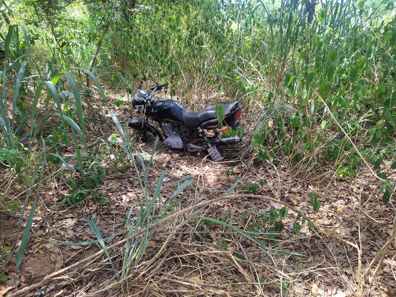 Nesta sexta-feira, por volta das 10h, a guarnição da Força Tática do 2º Batalhão recebeu informações sobre um veículo abandonado em meio a vegetação no bairro Nova Três Lagoas III, onde após diligências lograram êxito na localização de uma motocicleta, de cor preta e sem as rodas, próximo da estação de tratamento de esgoto.