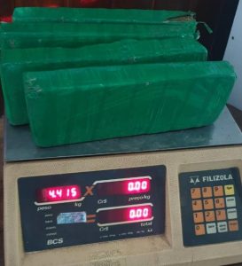 TRÊS LAGOAS (MS) – Na manhã de sexta-feira (18) por volta das 11h35, durante patrulhamento ostensivo pelo bairro São Carlos, policiais militares passaram ao lado de uma camionete S10 de cor branca ocupada por um homem, que inesperadamente acelerou bruscamente iniciando uma fuga em alta velocidade, vindo a arremessar para fora do veículo alguns objetos que posteriormente foi constatado serem 4 tabletes de maconha pesando aproximadamente 4,415 (quatro quilos e quatrocentos e quinze gramas).