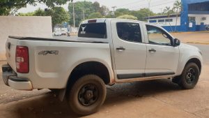 Verificou-se que a camionete estava sem os bancos traseiros, com rádio comunicador e com forte odor de Maconha, além de estar com uma placa de identificação clonada, e em vistoria minuciosa e checagem de alguns sinais identificadores do veículo, constatou ser produto de Roubo ocorrido na cidade de Alvorada-MS.