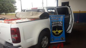 Equipado com sistema de radiocomunicação, a caminhonete foi identificada como sendo produto de roubo ou furto, pois apresentou vários números de identificação raspados e possuía uma placa falsa de Macaé (RJ) e outra de Ribeirão Preto (SP).