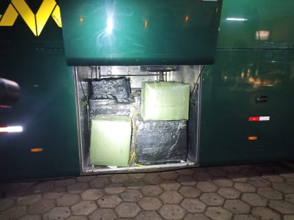 No interior do bagageiro foram encontrados, várias mercadorias de origem estrangeira.