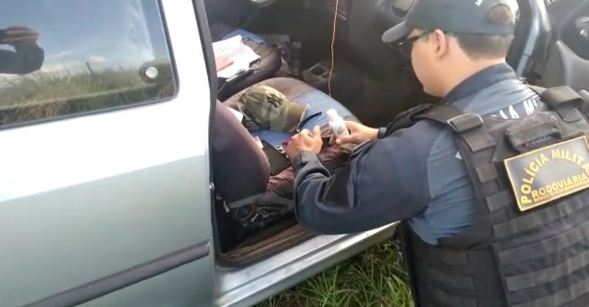 Os PMs realizavam fiscalização de trânsito, na MS 112, quando abordaram automóvel VW/Gol, placa de Inocência/MS.