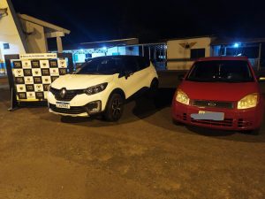 O documento CLA (Certificado de Licenciamento Anual) do Captur apresentava visíveis sinais de falsificação e em consulta dos sinais identificadores do veículo, foi constatado registro de roubo ou furto no sistema, datado de 17/04/2020, e as placas verdadeiras são da cidade de Novo Hamburgo (RS).