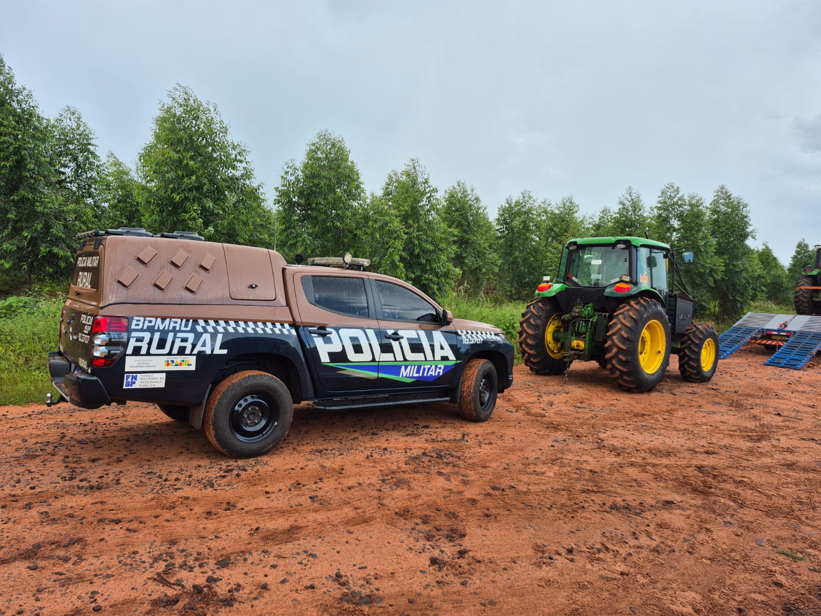 O veículo, um trator da marca John Deere, havia sido furtado anteriormente e, após verificação, foi confirmado que se tratava do bem subtraído, conforme registro oficial da ocorrência. No local, a equipe policial fez contato com o responsável pela empresa proprietária do maquinário, que compareceu e reconheceu o trator como sendo de sua propriedade.