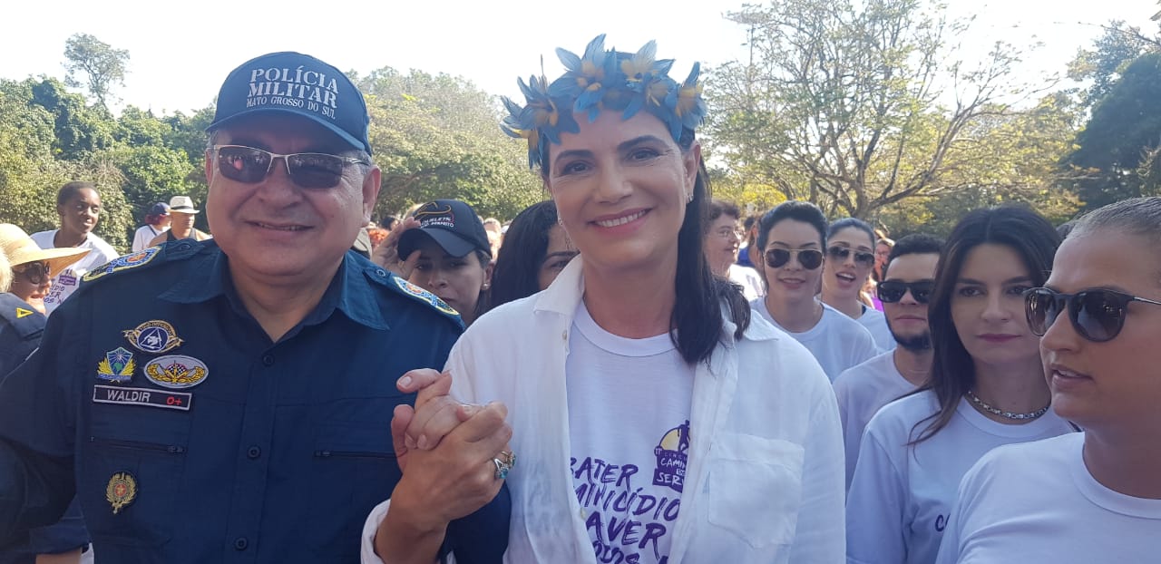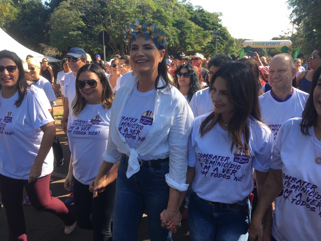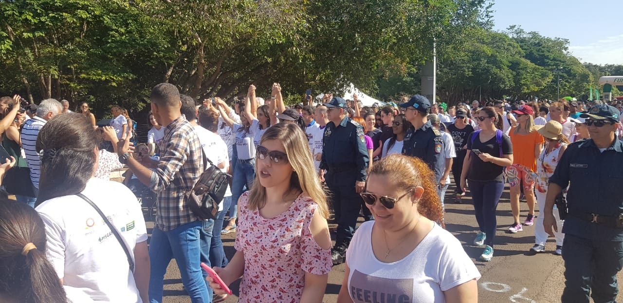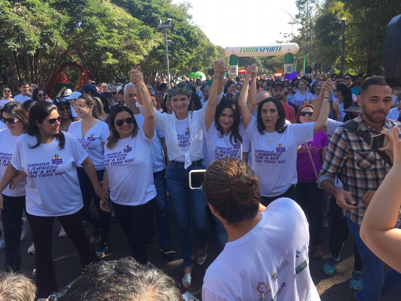 Campo Grande (MS) – Na manhã deste sábado (01/06), em frente à sede da Governadoria no Parque dos Poderes, servidores, membros da comunidade e a atriz Luiza Brunet participaram de uma caminhada contra o feminicídio. Foram distribuídas camisetas da campanha que tinha como objetivo conscientizar e aproximar a sociedade na luta contra o feminicídio.