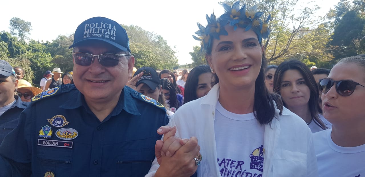 O comandate-geral da PMMS, coronel PM Waldir Ribeiro Acosta e outros representantes da instituição participaram do evento.