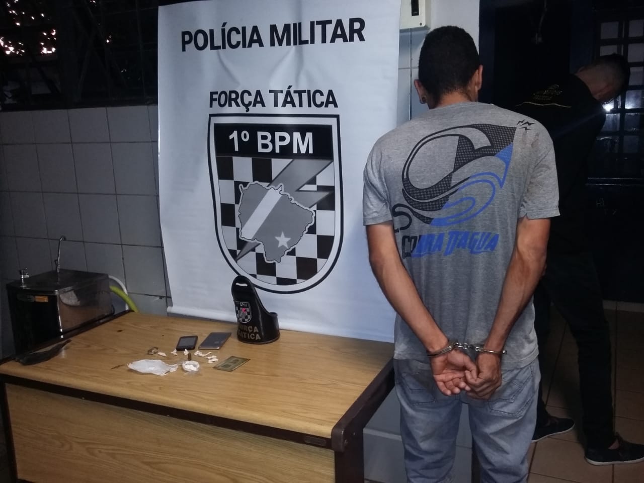 Ainda durante as abordagens, a equipe da Força Tática recebeu, via denúncia anônima, uma informação de alguns jovens utilizando substâncias ilícitas. Chegando no local avistaram uma das pessoas saindo rapidamente. Após intervenção policial descobriu-se que este era o que vendia os entorpecentes. Foi dada a voz de prisão ao traficante.