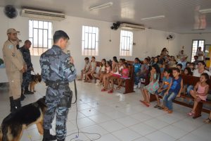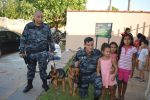 Também foram expostos as viaturas da Força Tática, Bombeiros, para que eles pudessem conhecer melhor como é a atuação, assim como conhecer os materiais utilizados no serviço operacional. Houve a apresentação dos os cachorros do Canil, onde as crianças puderam pegar os animais.
