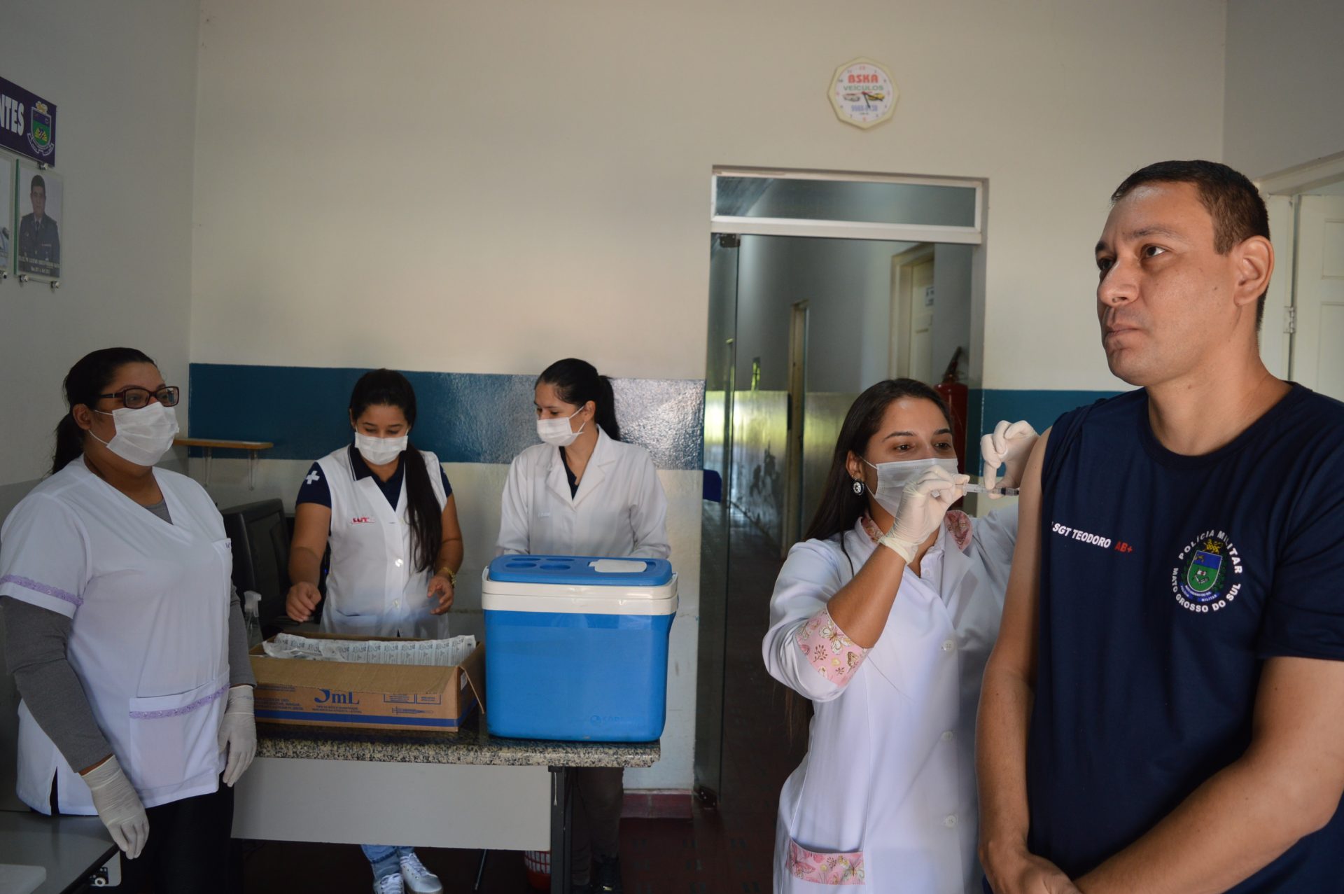 Coxim (MS)- Na manhã de ontem (16/04), os policiais militares receberam vacina contra gripe (influenza) na sede do 5º Batalhão de Polícia Militar (BPM) de Coxim.