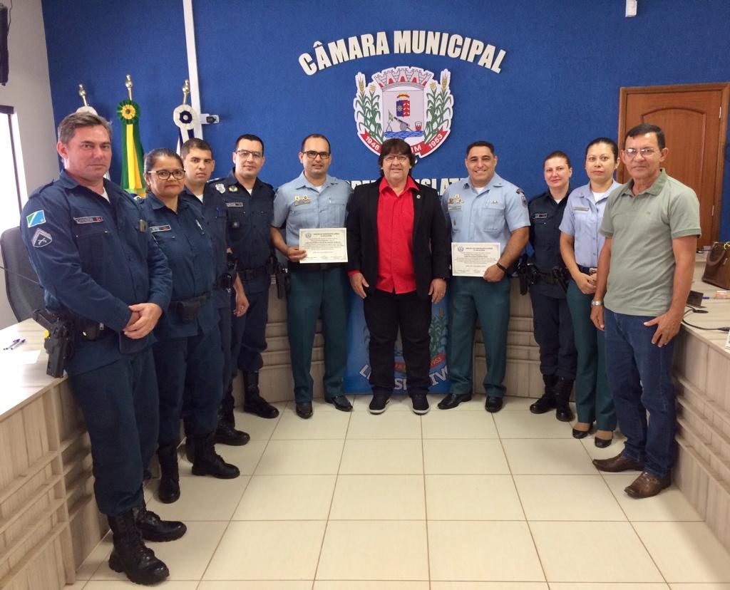 A homenagem, aos cabos PM Antônio Carlos Olasar de Andrade e André Barbosa Rios, foi uma indicação dos vereadores César Nogueira e Carlos Américo Grubert, pelos excelentes serviços realizados na execução do PROERD nas escolas municipais de Jardim. As congratulações e aplausos foram destinadas, também, à professora Maria Alcinda Paná, que foi a articuladora do Programa nas escolas, através da Secretaria Municipal de Educação.