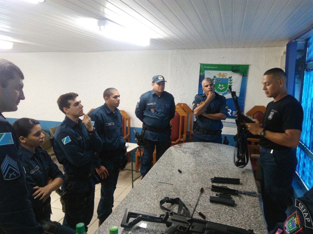 A manutenção e conhecimento técnico deste armamento entregue recentemente a Policia Militar estão sendo ministrados pelos instrutores, Tenente PM Fernando e Sargento PM Siqueira da Força Tática/1º BPM.