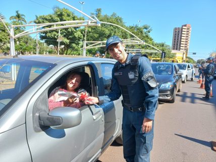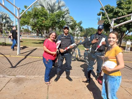 Três Lagoas (MS) – Na manhã do dia 07 de maio, o Comandante do 2º Batalhão, Tenente Coronel Paulo Ribeiro dos Santos juntamente com demais policiais militares, distribuíram botões de rosas vermelhas no centro de Três Lagoas em homenagem ao Dia das Mães.