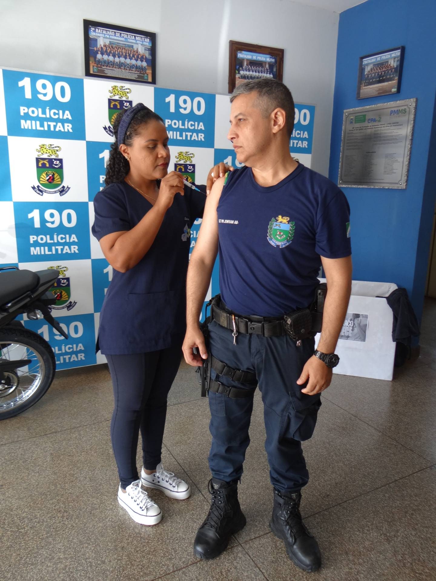 Três Lagoas – MS, na manhã desta terça-feira (9/5), a Secretaria Municipal de Saúde de Três Lagoas, por meio da Central de Imunização realizou a imunização contra a Influenza dos policiais militares lotados no 2º Batalhão de Polícia Militar e Unidades da área.