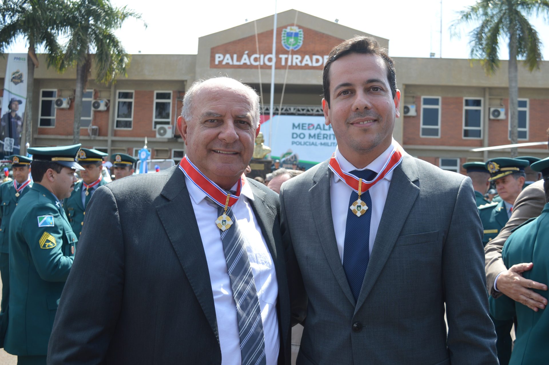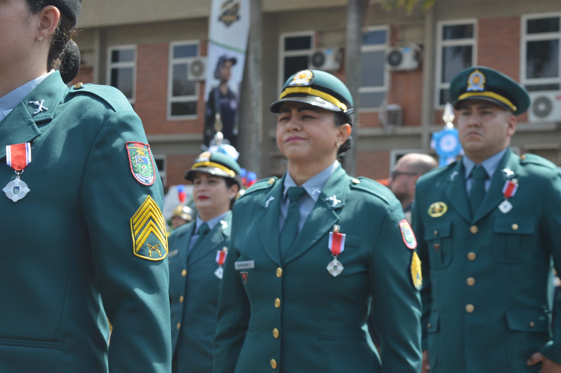 Durante a cerimônia, foram entregues as medalhas Insígnia do Mérito Policial Militar, reconhecimento concedido àqueles que se destacam pelo compromisso, ética e excelência no exercício de suas funções, seja na atuação militar ou em parceria com a segurança pública.