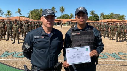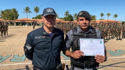 Coxim (MS): Os Policiais Militares do 5º Batalhão de Polícia Militar, Tenente Manoel Moreira de Oliveira e Sargento Renê Ricardo Furtado da Silva receberam na manhã de ontem (24/05), os Certificados de Conclusão do Estágio de Adaptação de Aeromóveis no 47º Batalhão de Infantaria de Coxim.