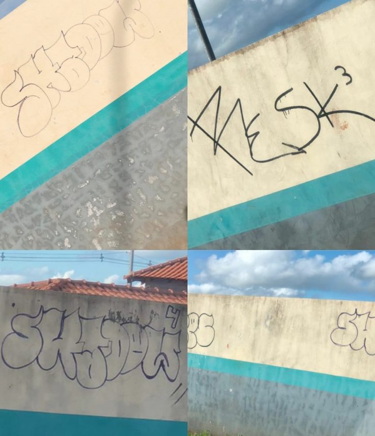 A ocorrência foi registrada na tarde desta quinta-feira (04/05) quando funcionários das escolas municipais Joaquim Moreira Lopes e Araci Wider identificaram pichações nas escolas e comunicaram a Polícia Militar. Os policiais saíram em diligência, colhendo relato de testemunhas e acessando câmeras de segurança, logrando êxito em localizar os infratores.