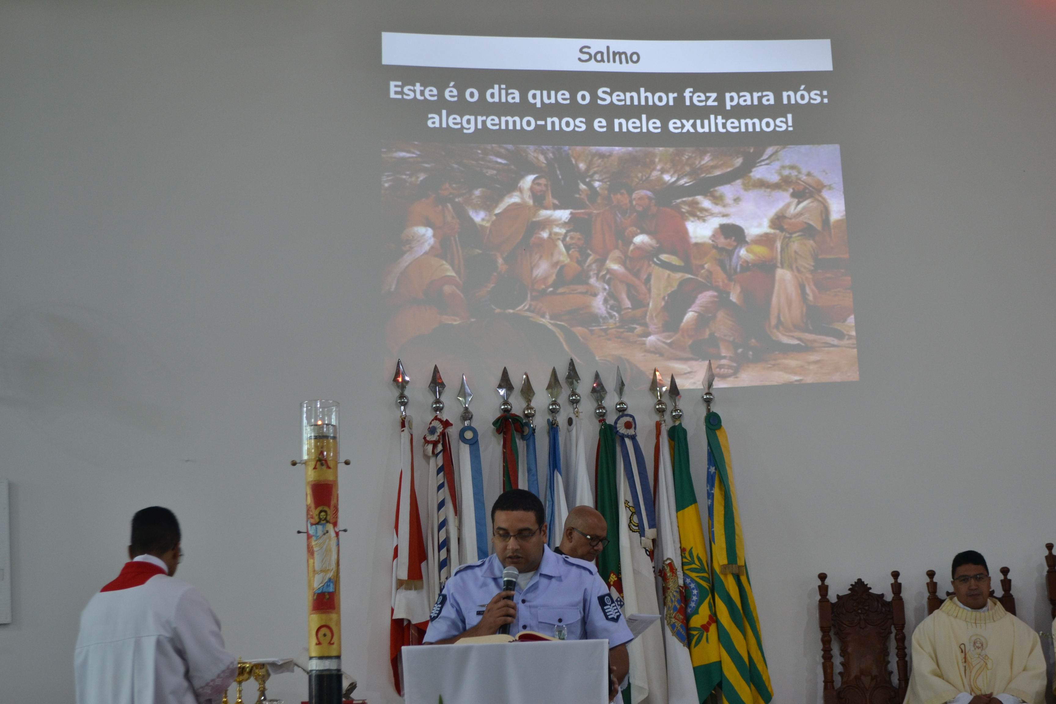 Campo Grande (MS) – Policiais militares participaram da celebração da Páscoa dos Militares, que ocorreu nessa manhã (24.05) na capital do Estado com a presença de diversas autoridades da área da Segurança Pública.