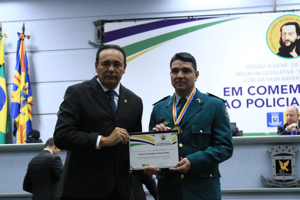 O Comandante-Geral da Polícia Militar, Coronel PM Waldir Ribeiro Acosta, em sua fala destacou que o trabalho do policial militar é um sacerdócio. “É relevante estarmos aqui. Tiradentes, que para nós, foi um exemplo, continua inspirando nossa luta. Nós também fazemos nossa luta, muitas vezes enxugando gelo, somos formados para isso. Parabenizo todos os homenageados. É um alento ser lembrado pelo trabalho que fazemos em nossa cidade”.