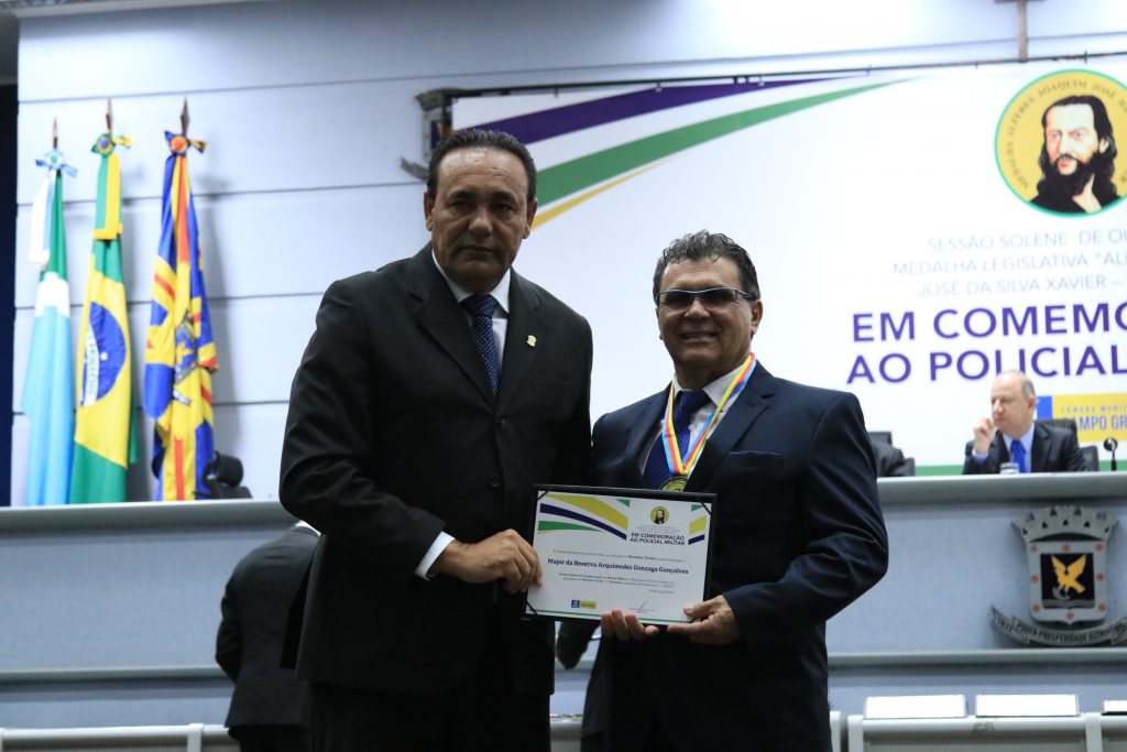 Campo Grande(MS) – A Câmara Municipal realizou na data de ontem (24/04) a sessão solene de Outorga da Medalha Legislativa “Alferes Joaquim José da Silva Xavier – TIRADENTES ” em homenagem aos Policiais Militares, instituída pela Resolução ° 1258/2017. O evento ocorreu no Plenário “Oliva Enciso”, na sede da Câmara e agraciou policiais militares que se destacaram no ano de 2018.
