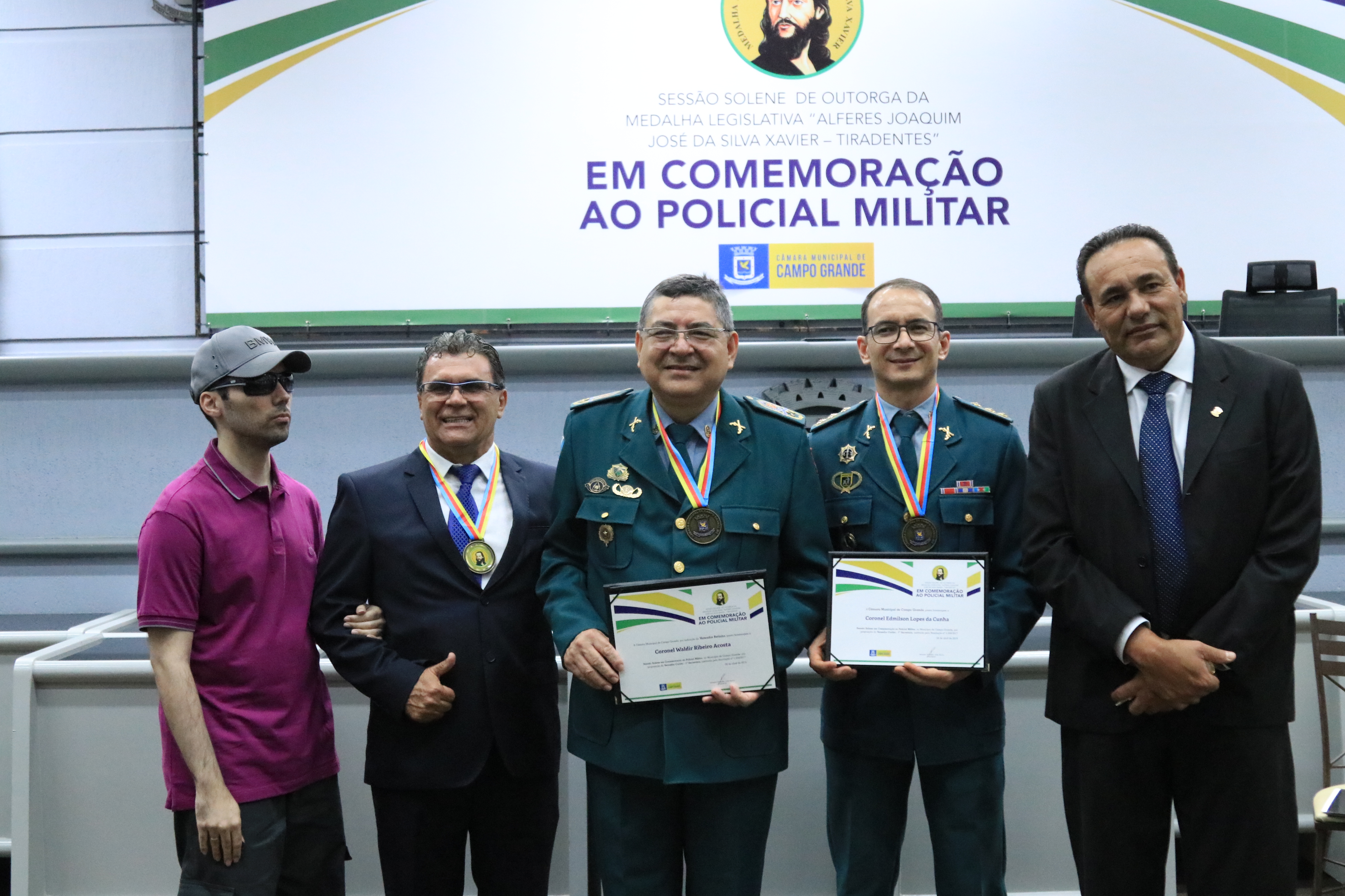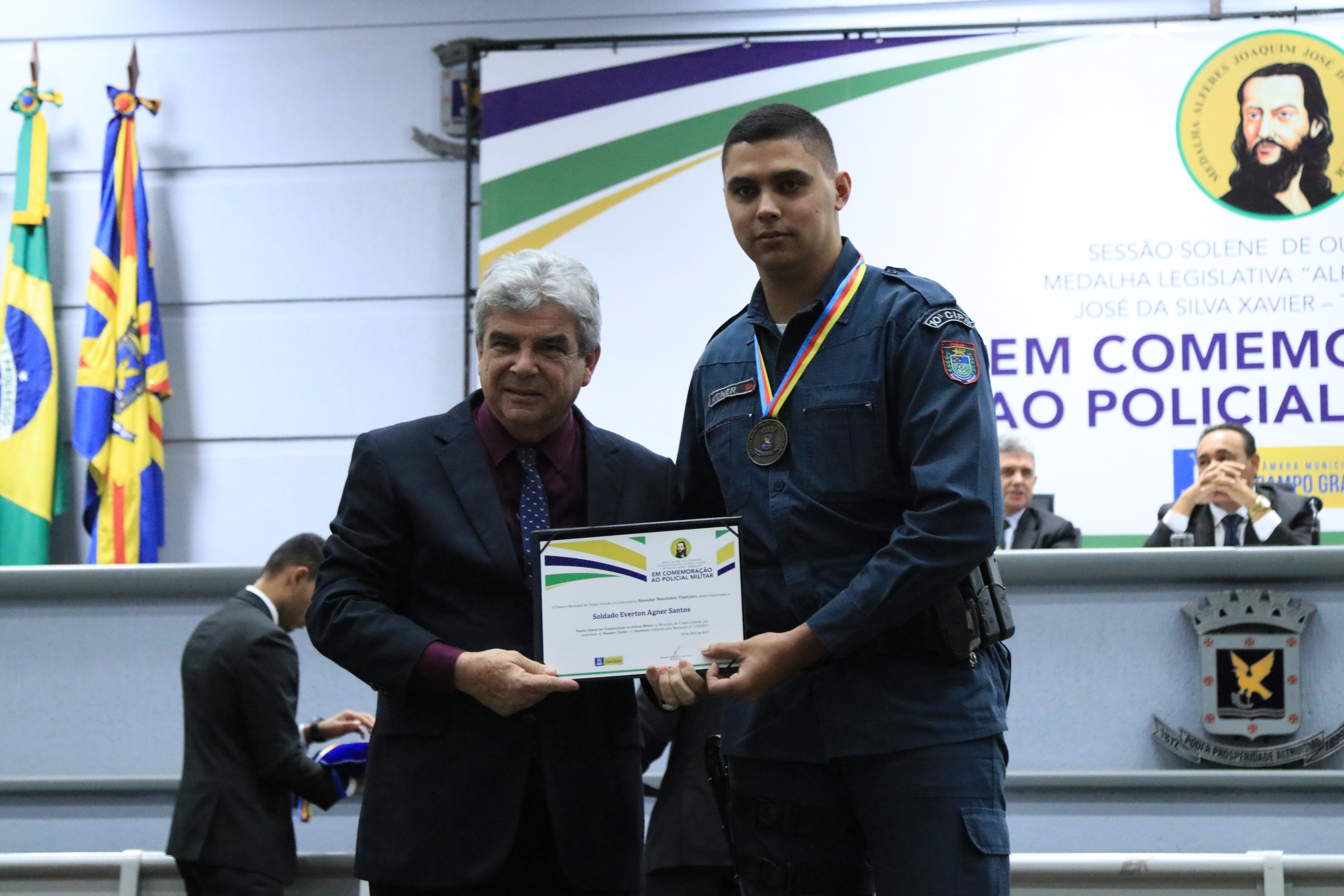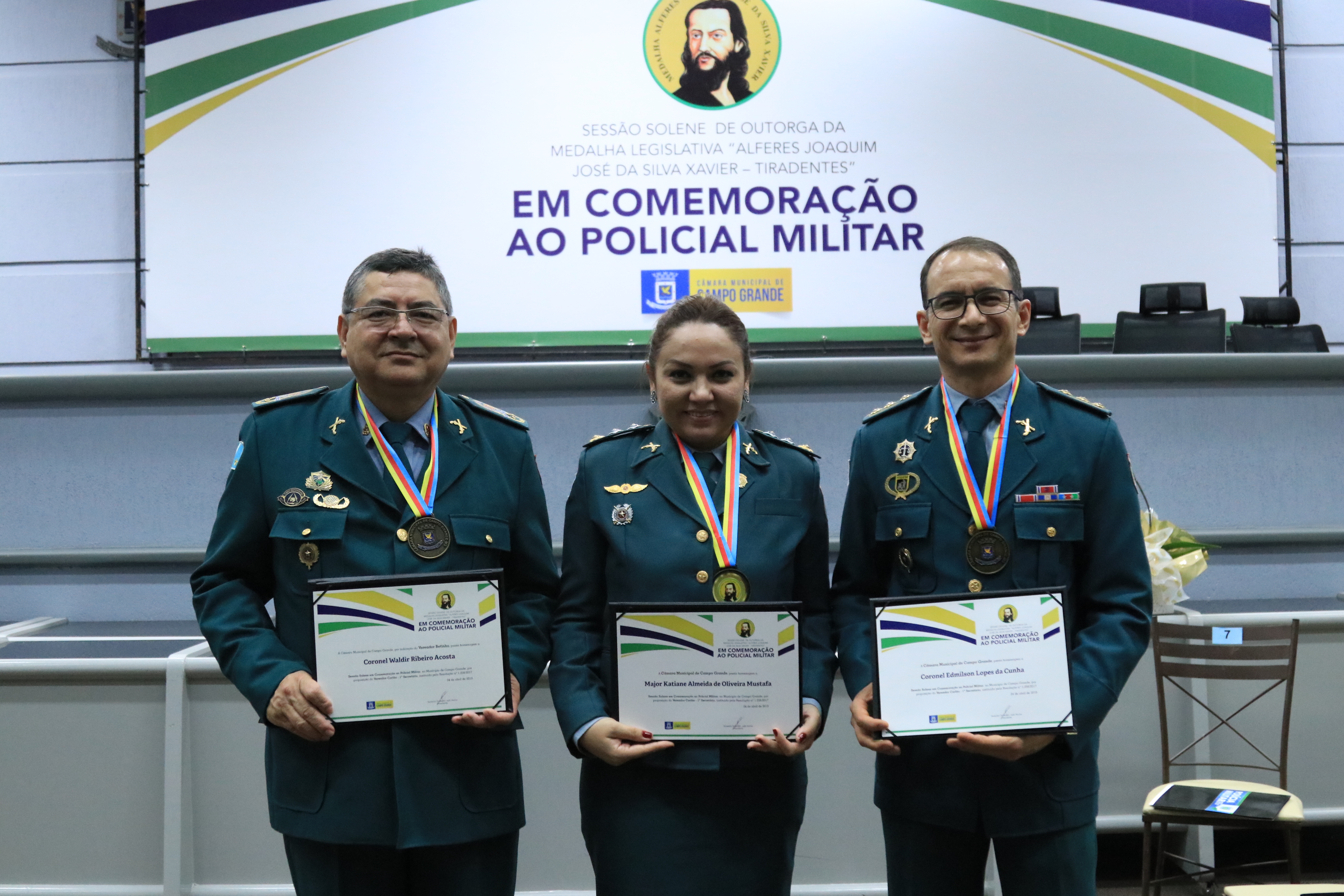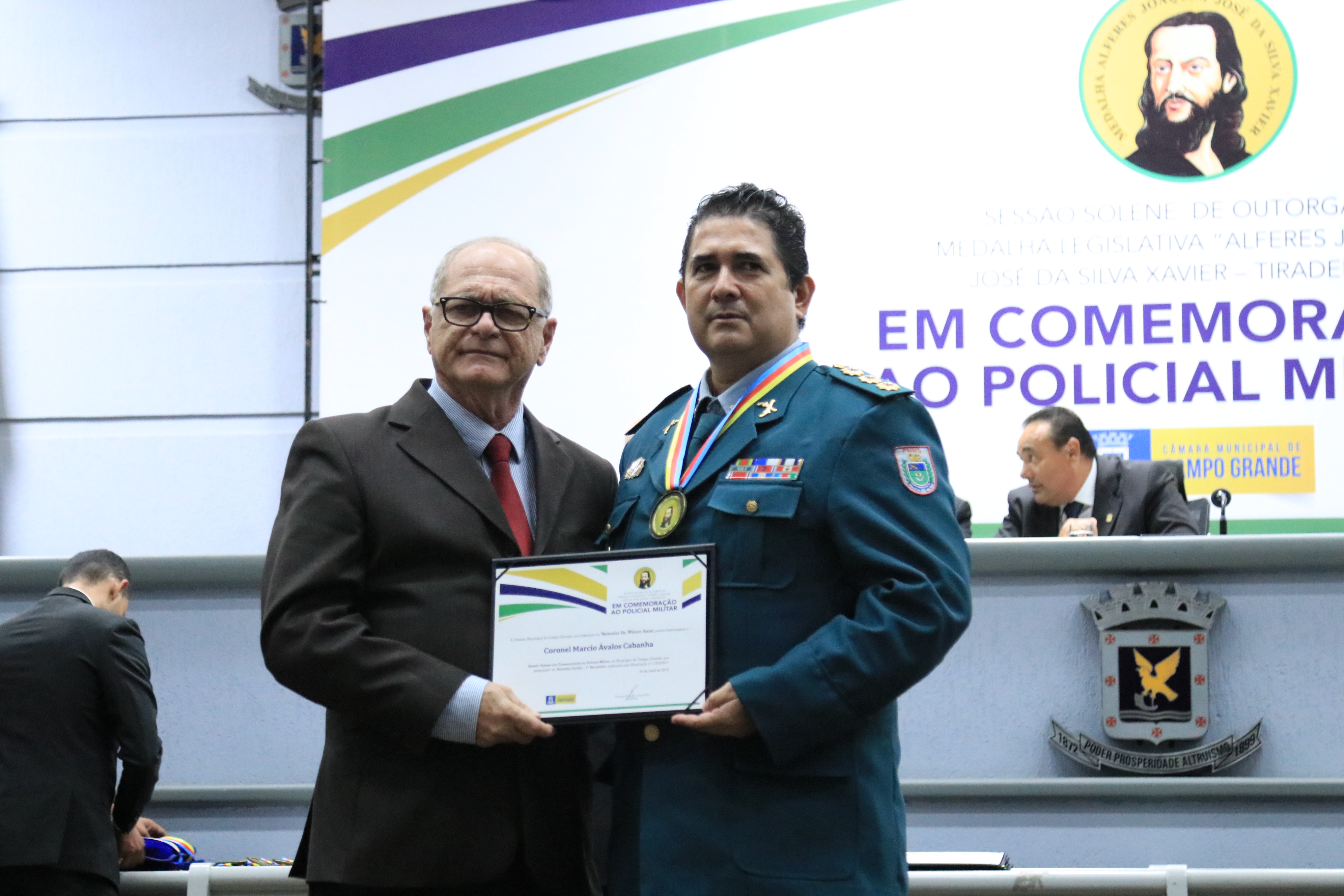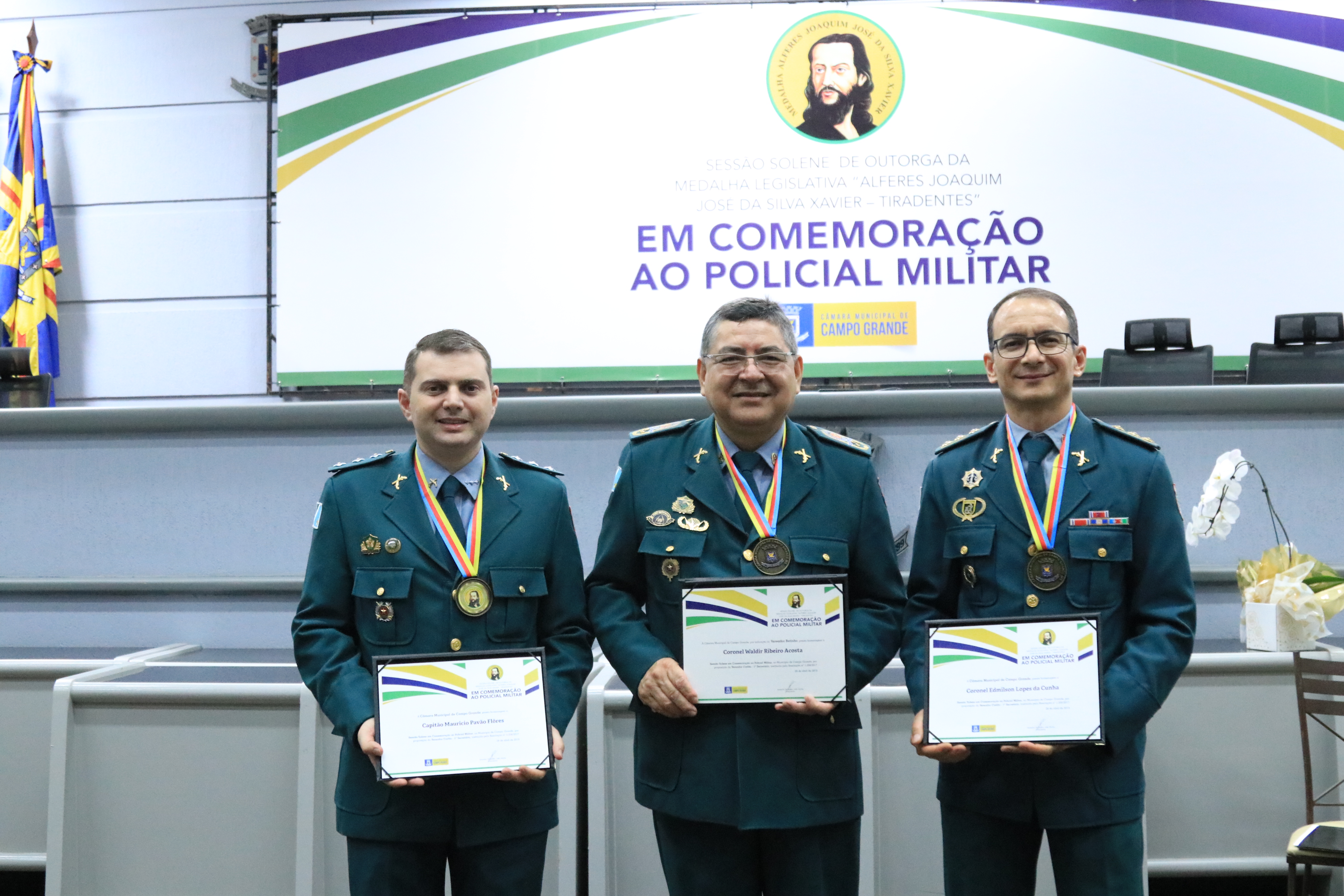 Campo Grande(MS) – A Câmara Municipal realizou na data de ontem (24/04) a sessão solene de Outorga da Medalha Legislativa “Alferes Joaquim José da Silva Xavier – TIRADENTES ” em homenagem aos Policiais Militares, instituída pela Resolução ° 1258/2017. O evento ocorreu no Plenário “Oliva Enciso”, na sede da Câmara e agraciou policiais militares que se destacaram no ano de 2018.