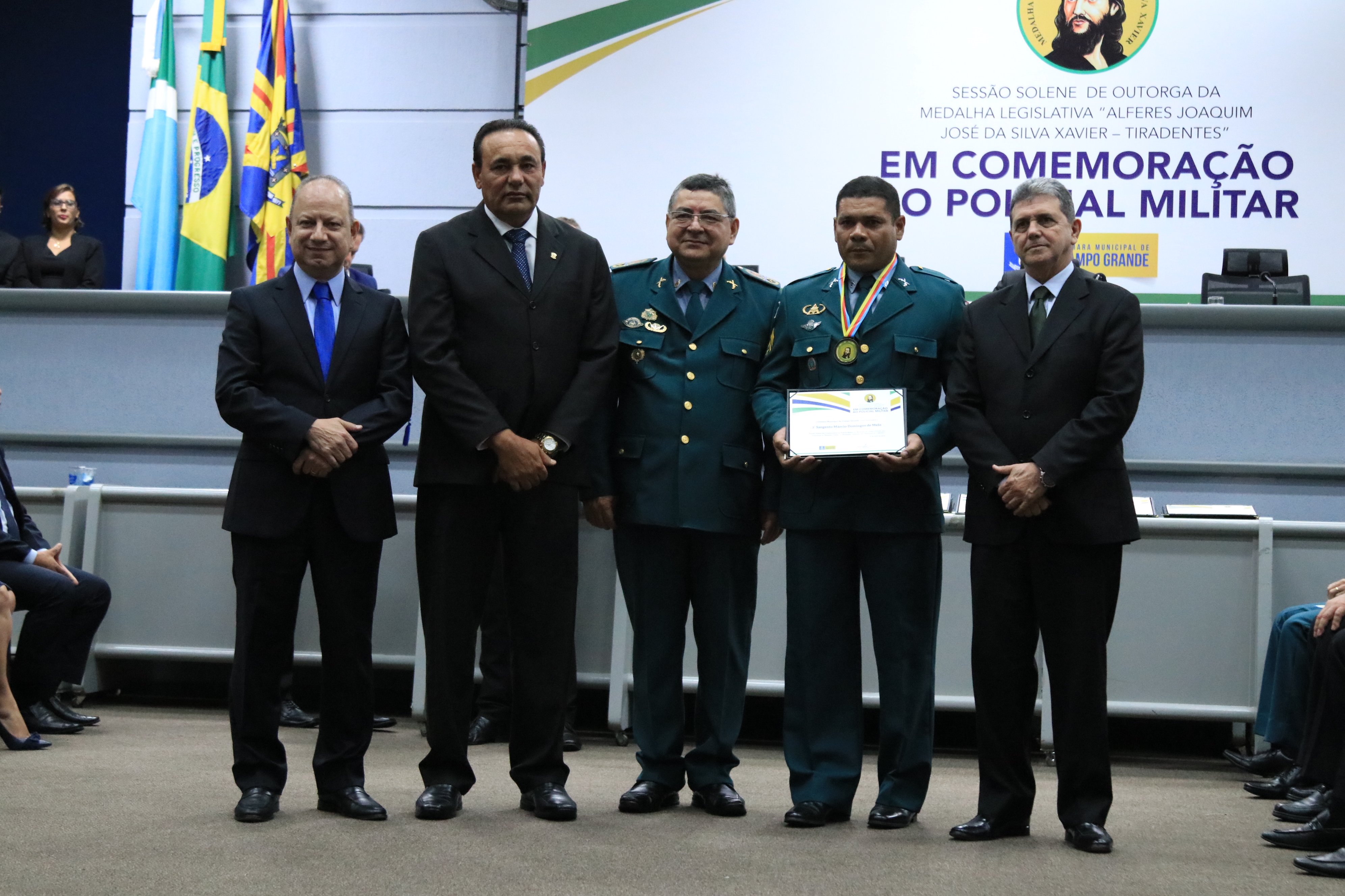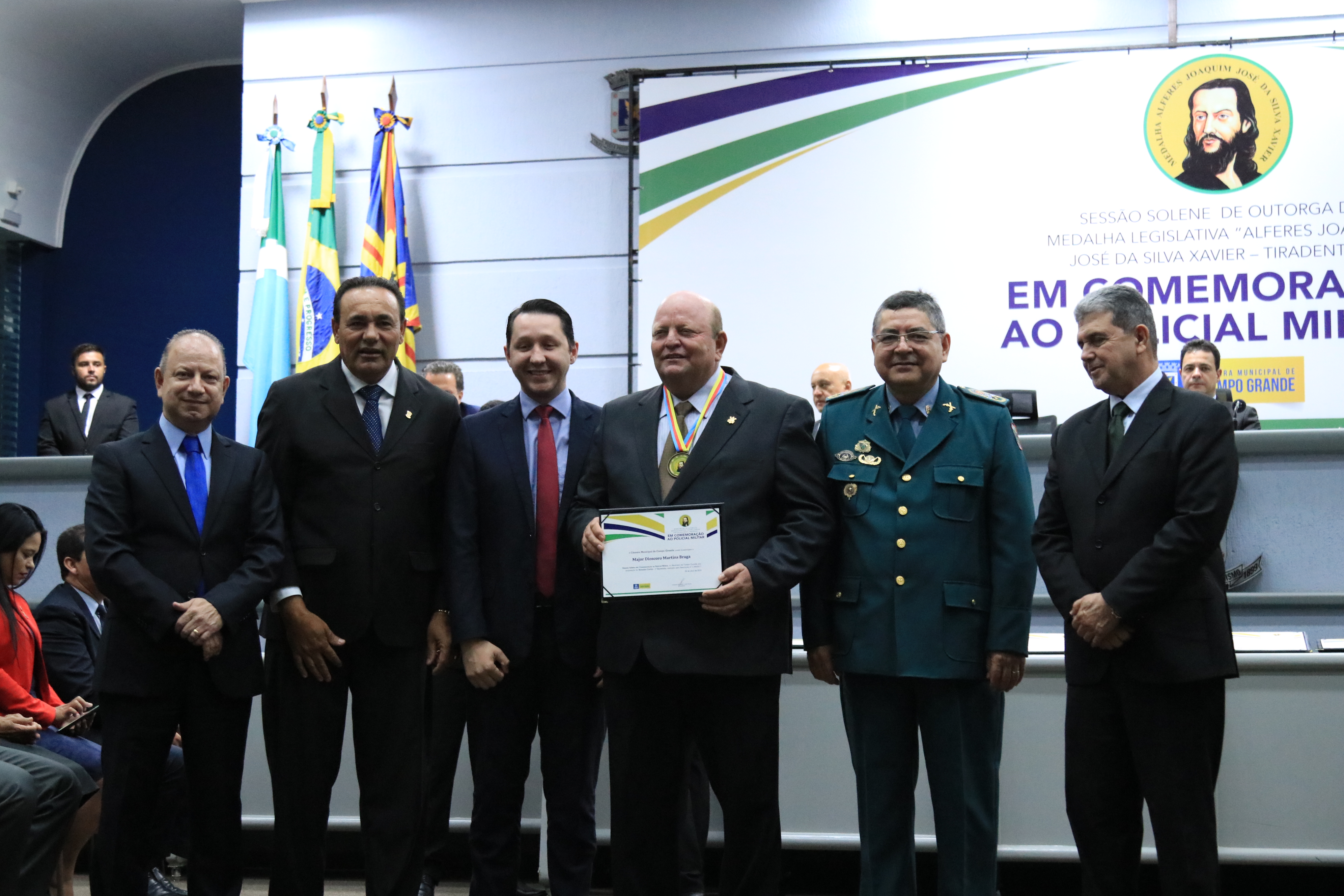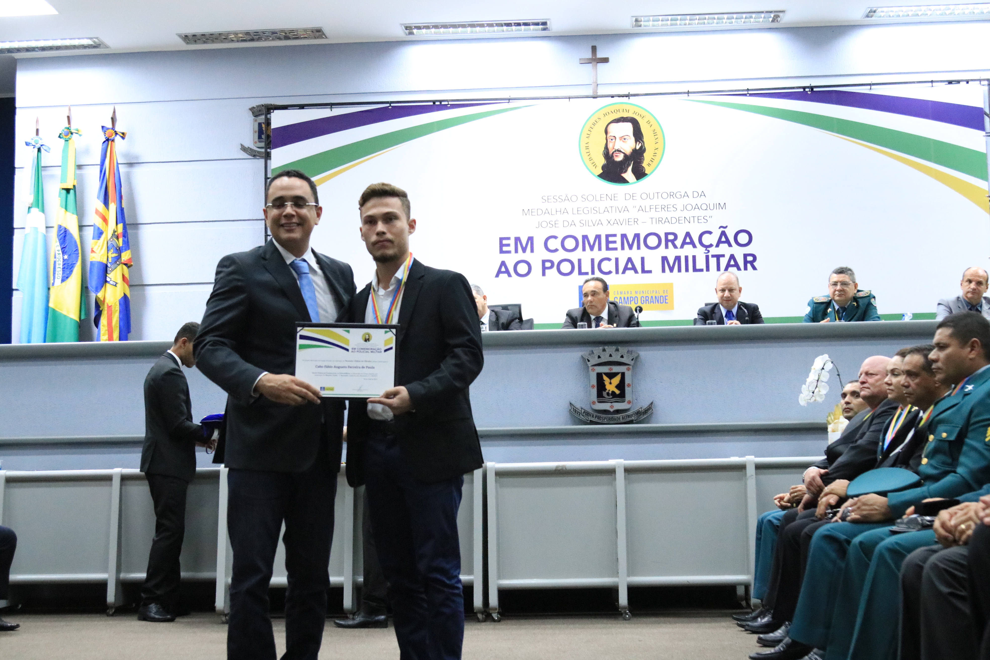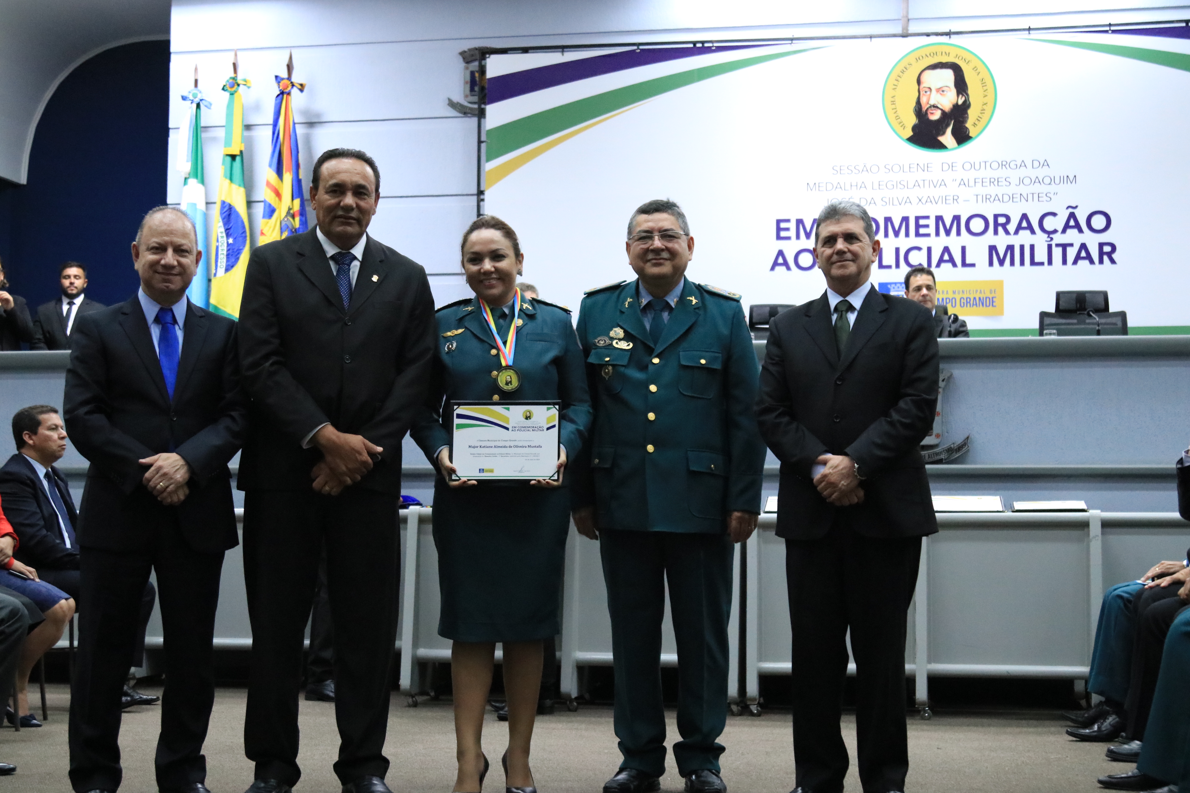 Campo Grande(MS) – A Câmara Municipal realizou na data de ontem (24/04) a sessão solene de Outorga da Medalha Legislativa “Alferes Joaquim José da Silva Xavier – TIRADENTES ” em homenagem aos Policiais Militares, instituída pela Resolução ° 1258/2017. O evento ocorreu no Plenário “Oliva Enciso”, na sede da Câmara e agraciou policiais militares que se destacaram no ano de 2018.