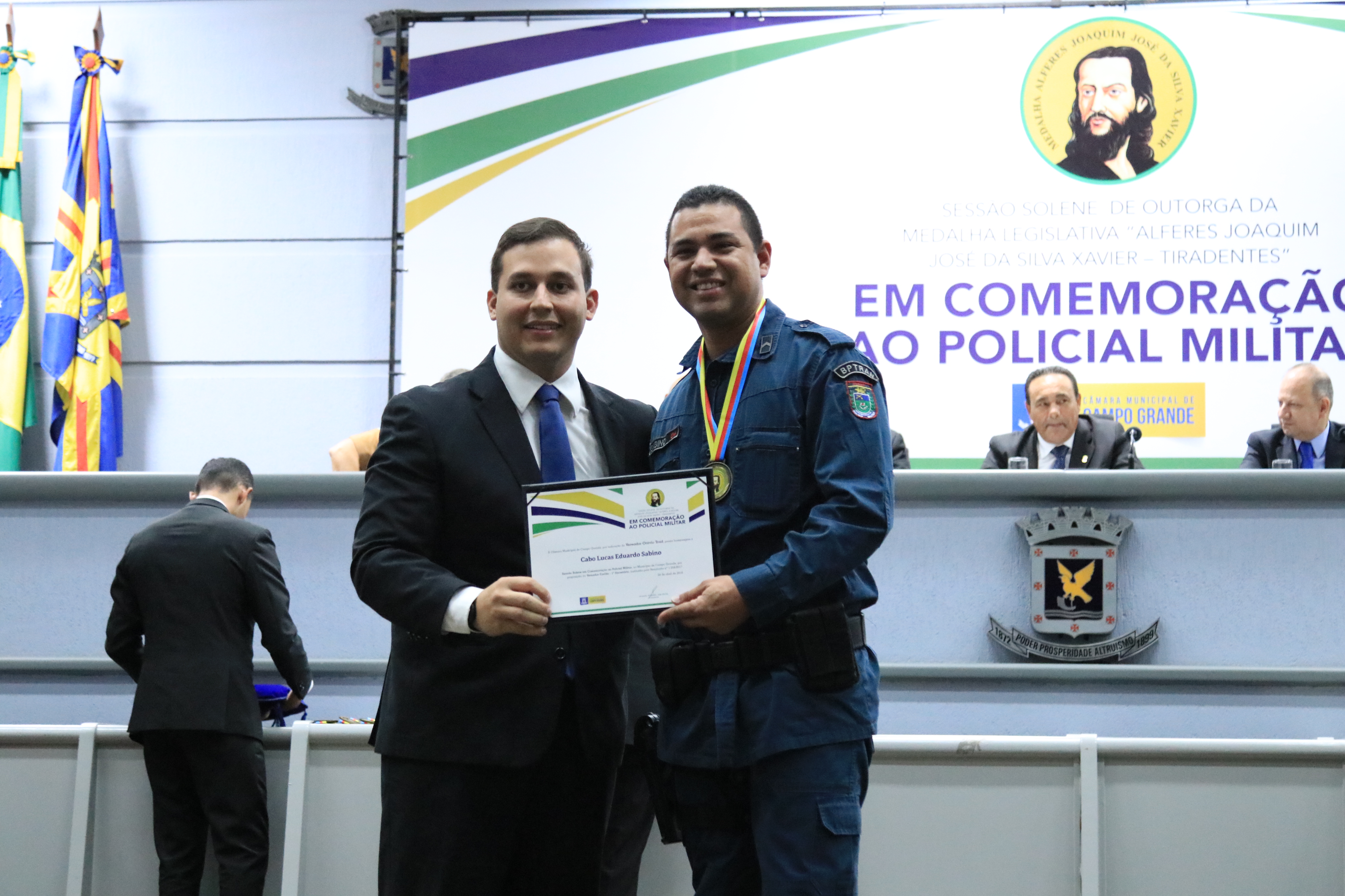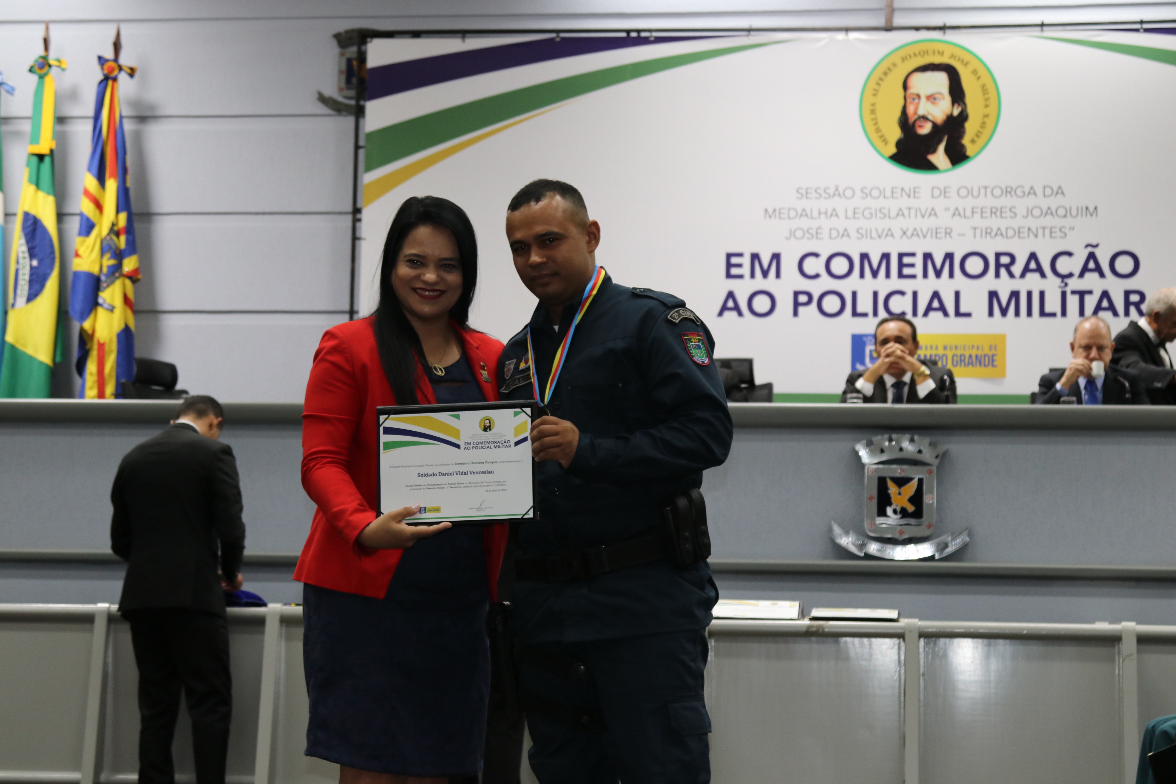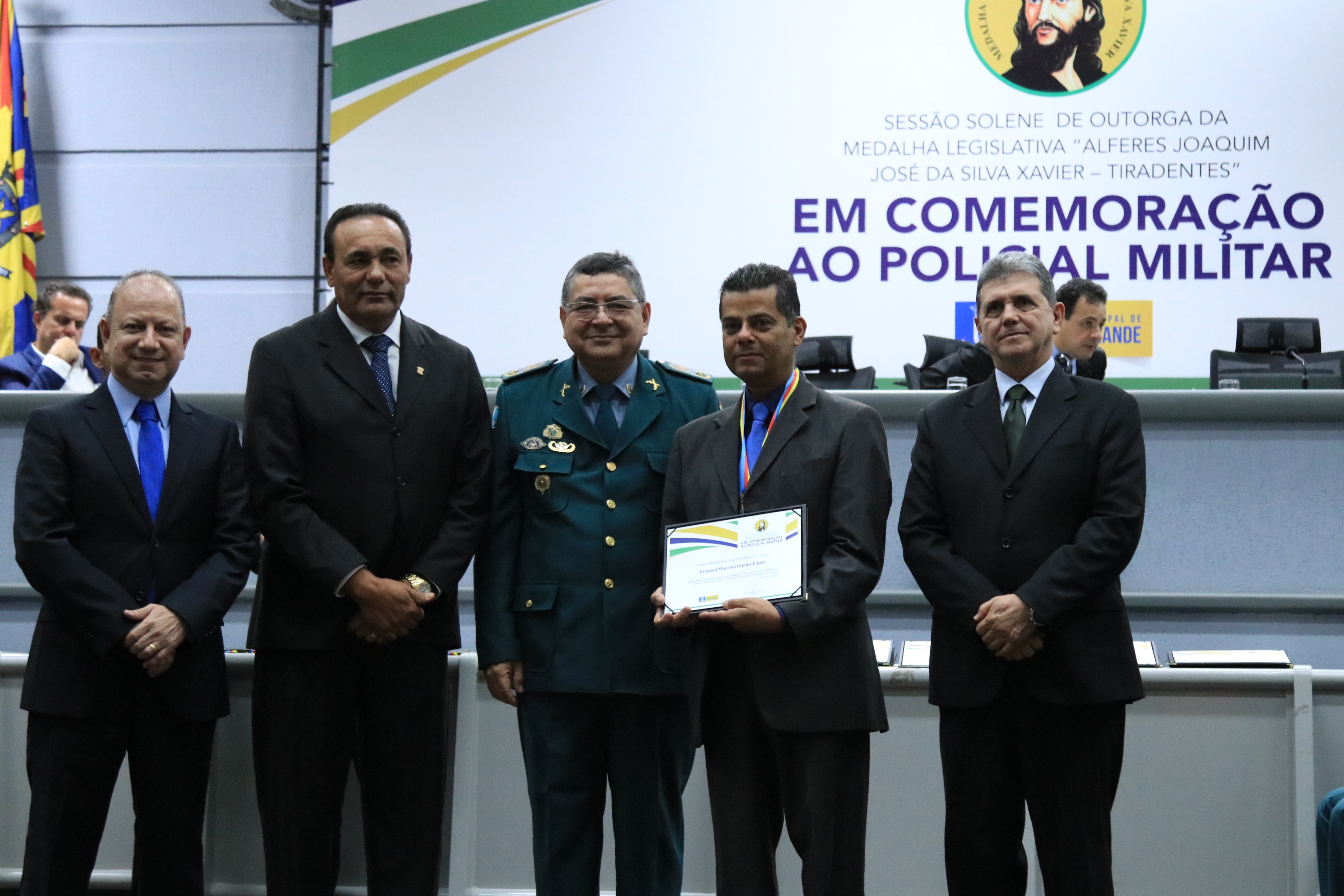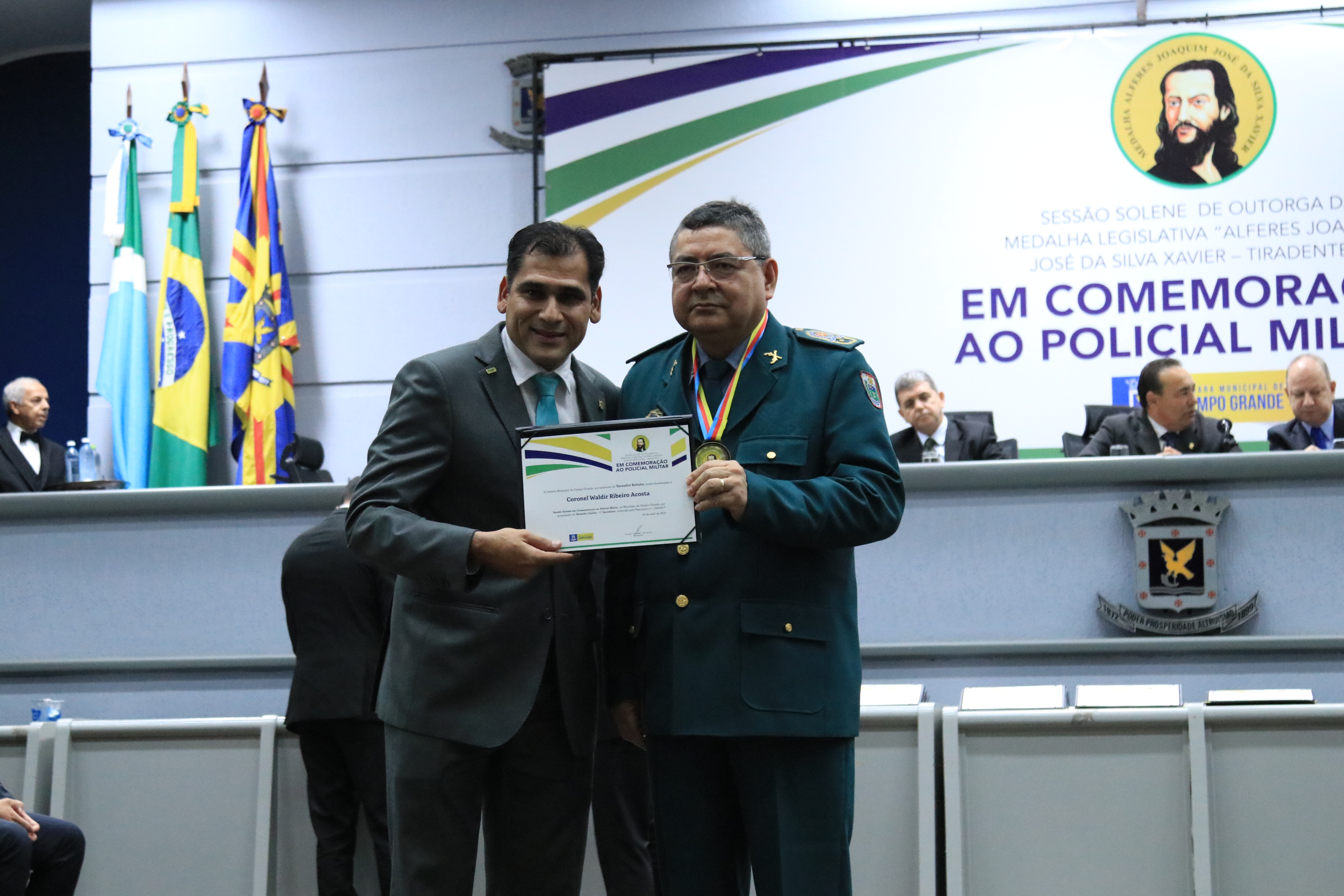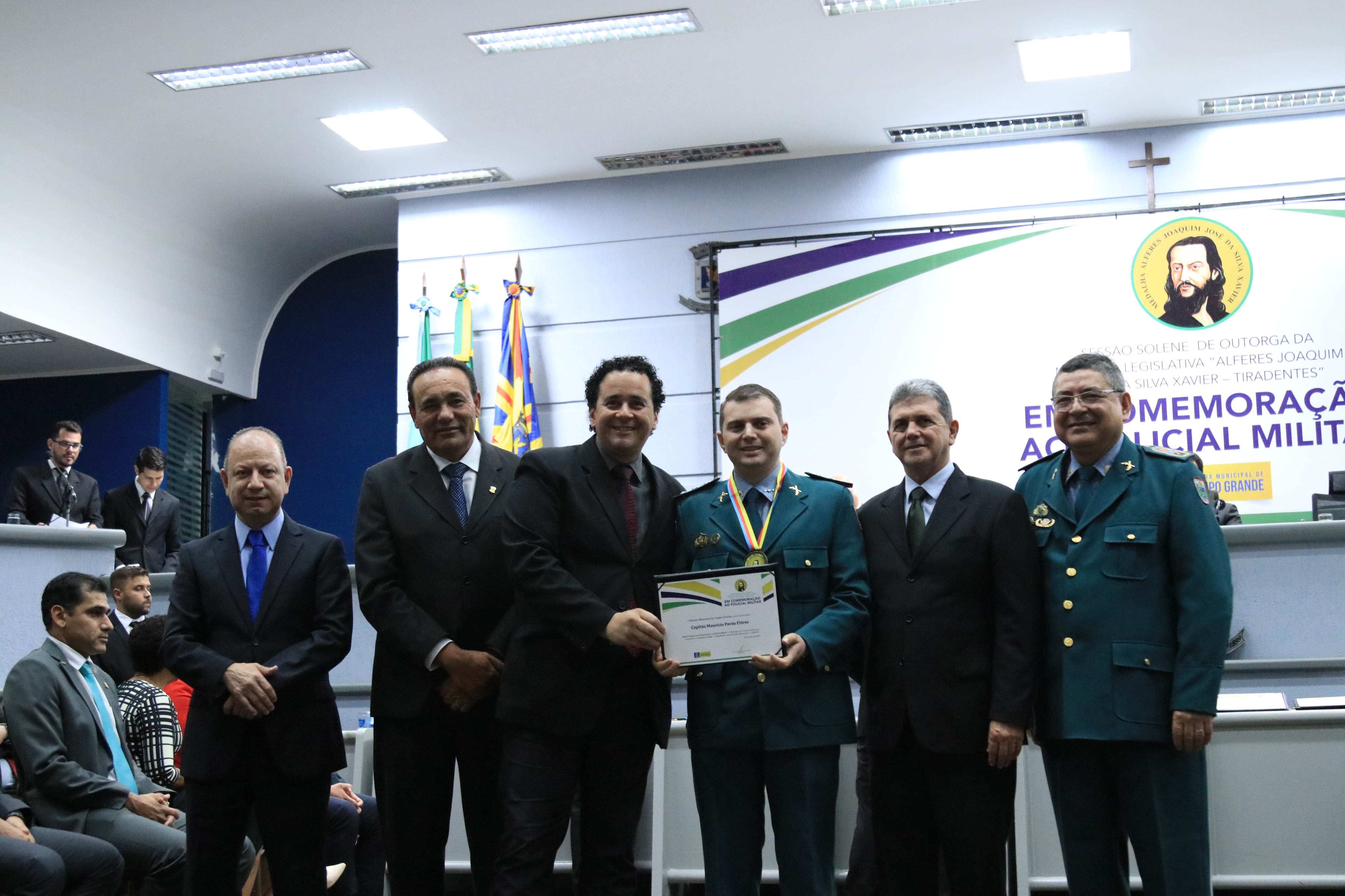 Campo Grande(MS) – A Câmara Municipal realizou na data de ontem (24/04) a sessão solene de Outorga da Medalha Legislativa “Alferes Joaquim José da Silva Xavier – TIRADENTES ” em homenagem aos Policiais Militares, instituída pela Resolução ° 1258/2017. O evento ocorreu no Plenário “Oliva Enciso”, na sede da Câmara e agraciou policiais militares que se destacaram no ano de 2018.