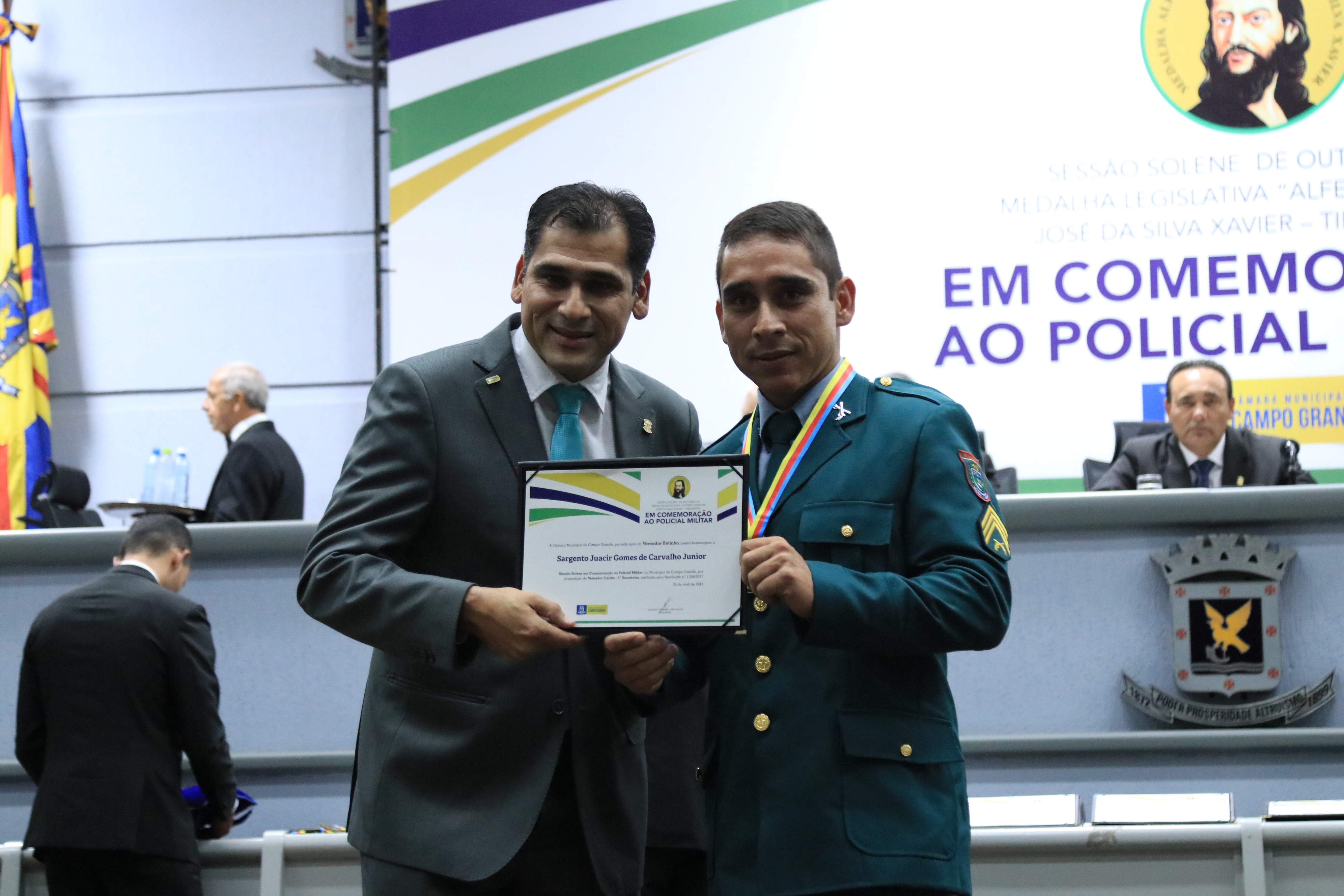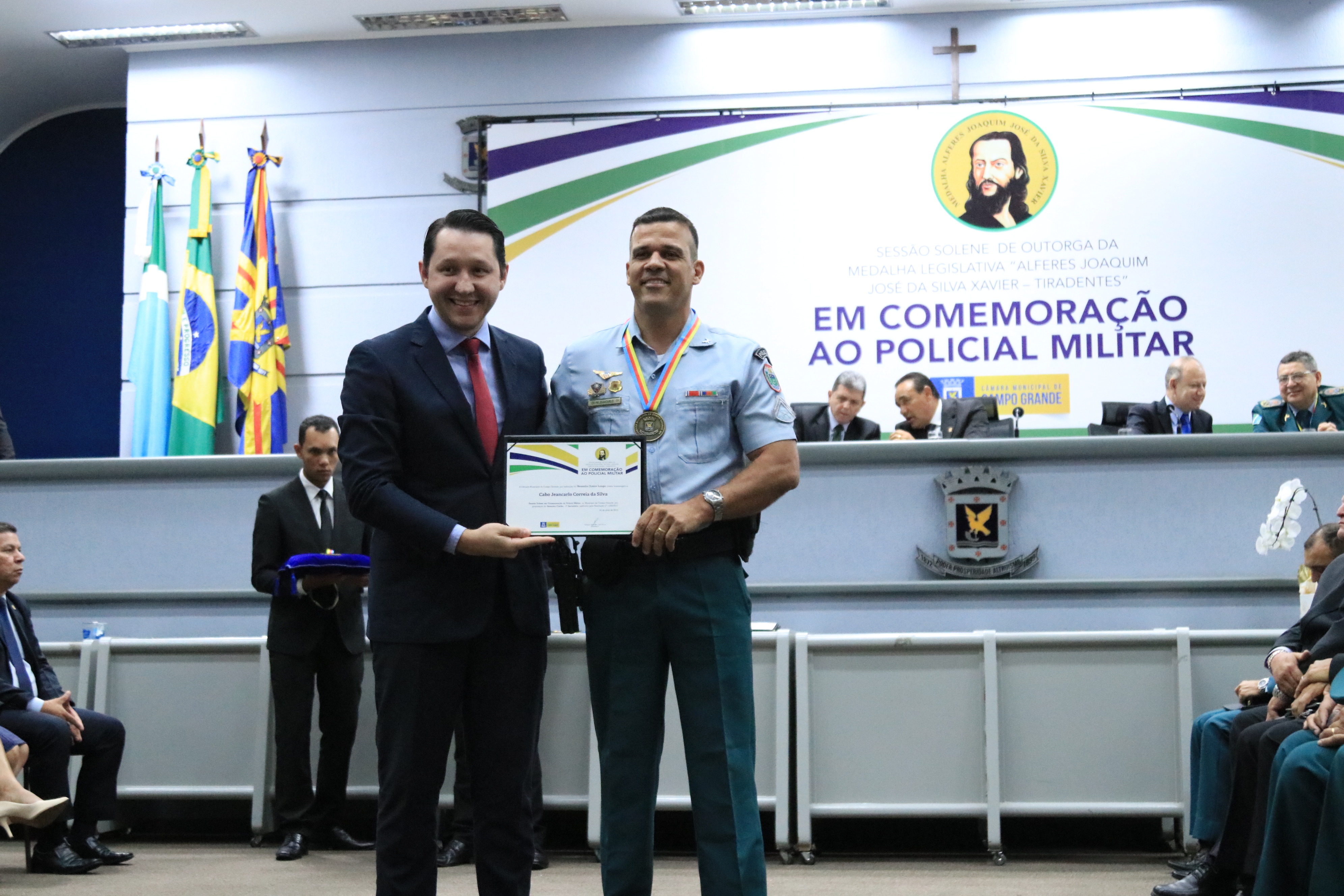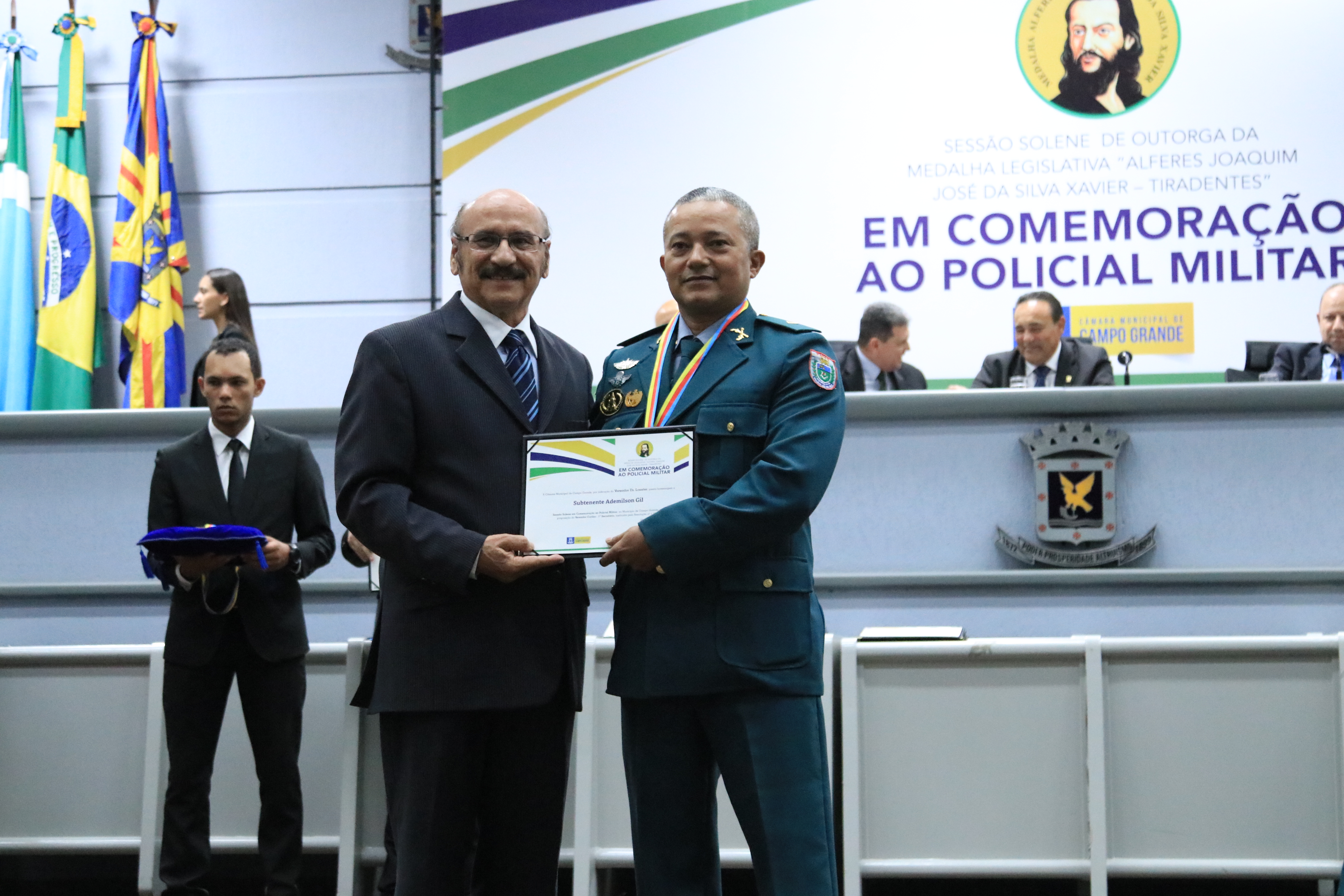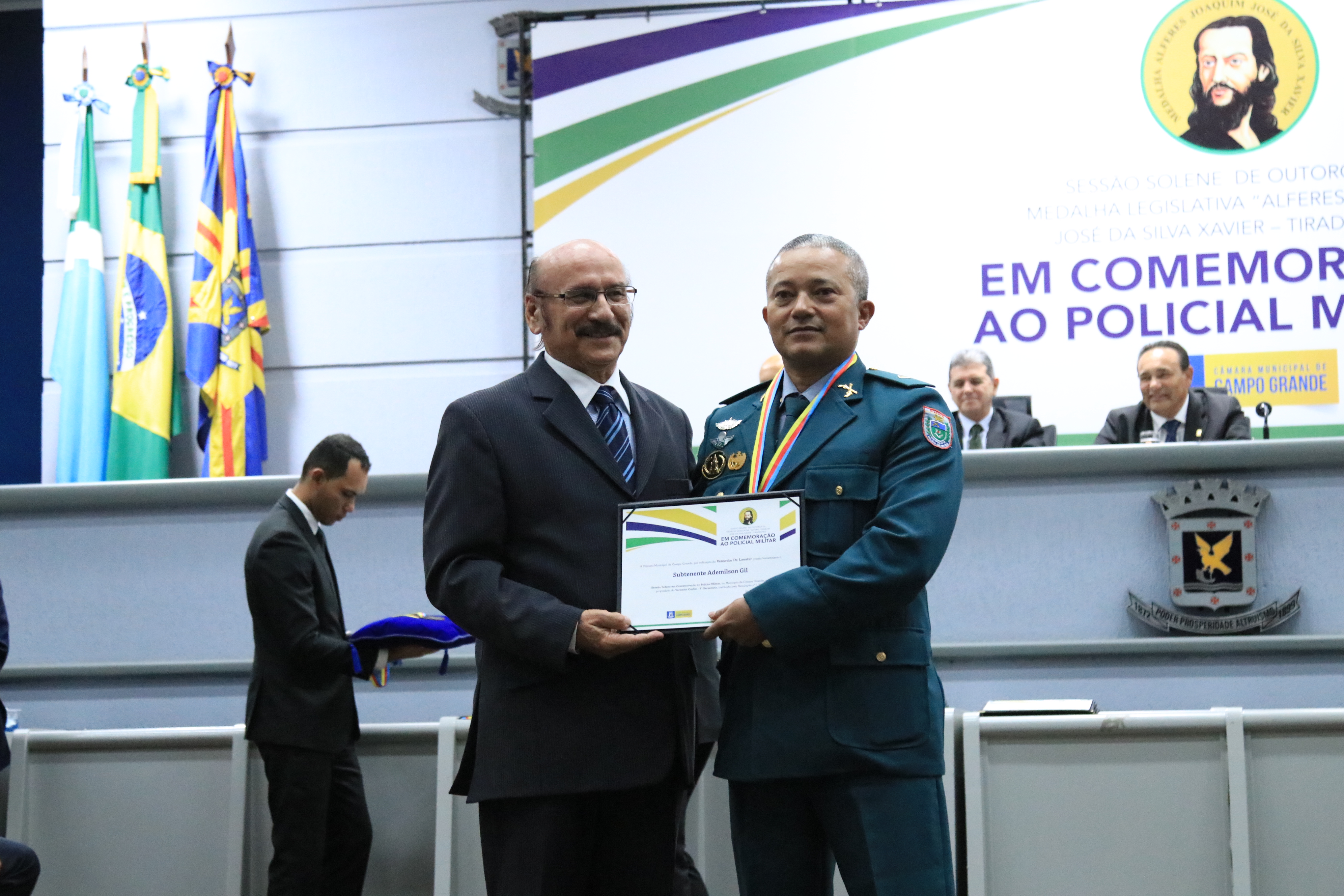 Campo Grande(MS) – A Câmara Municipal realizou na data de ontem (24/04) a sessão solene de Outorga da Medalha Legislativa “Alferes Joaquim José da Silva Xavier – TIRADENTES ” em homenagem aos Policiais Militares, instituída pela Resolução ° 1258/2017. O evento ocorreu no Plenário “Oliva Enciso”, na sede da Câmara e agraciou policiais militares que se destacaram no ano de 2018.