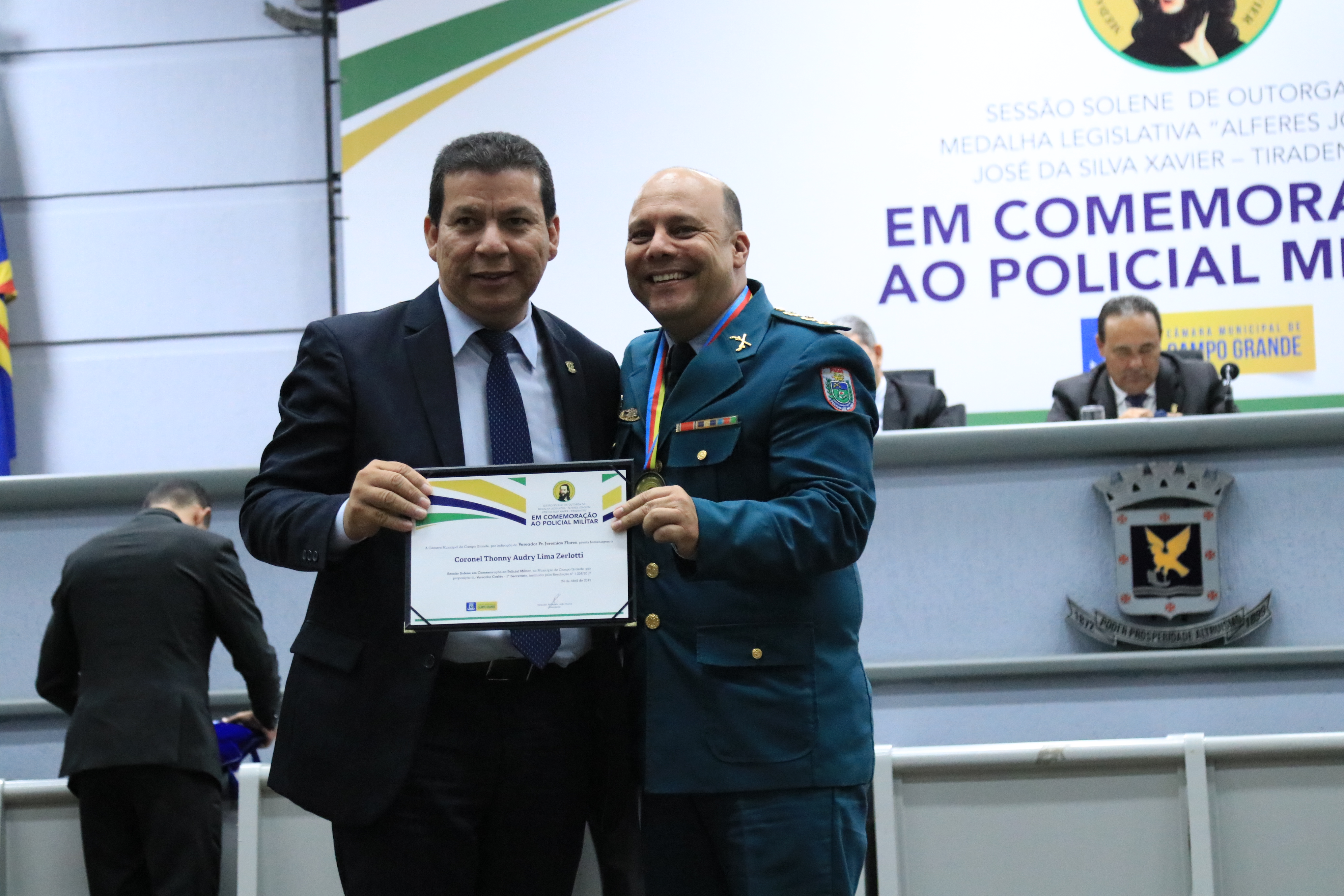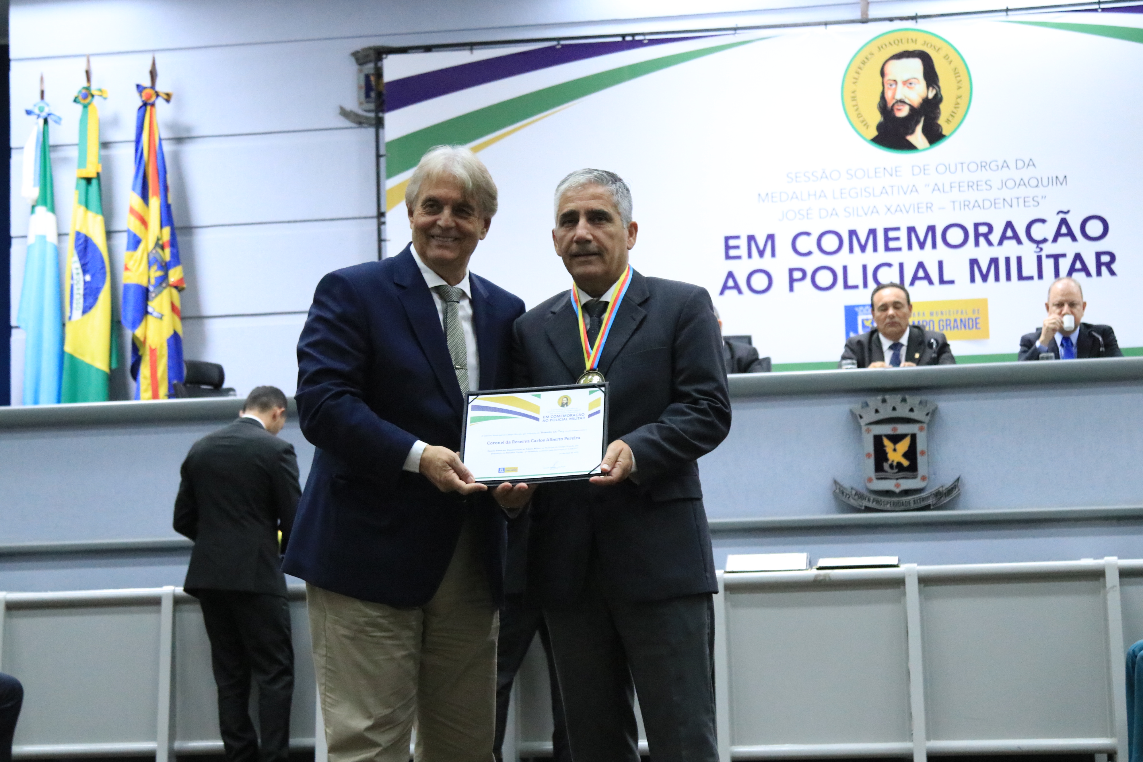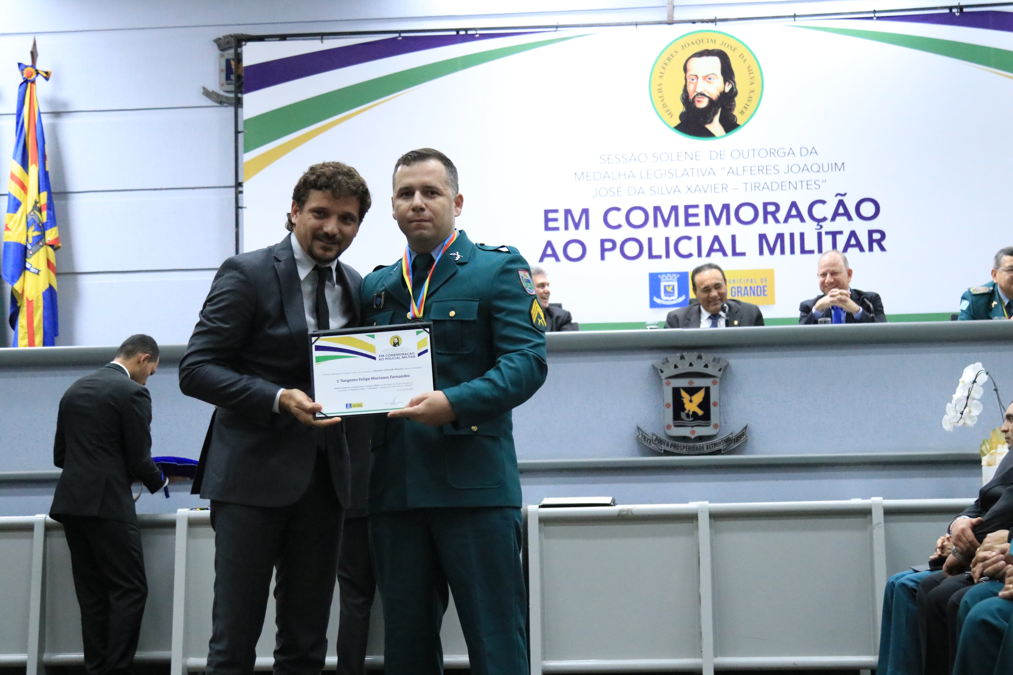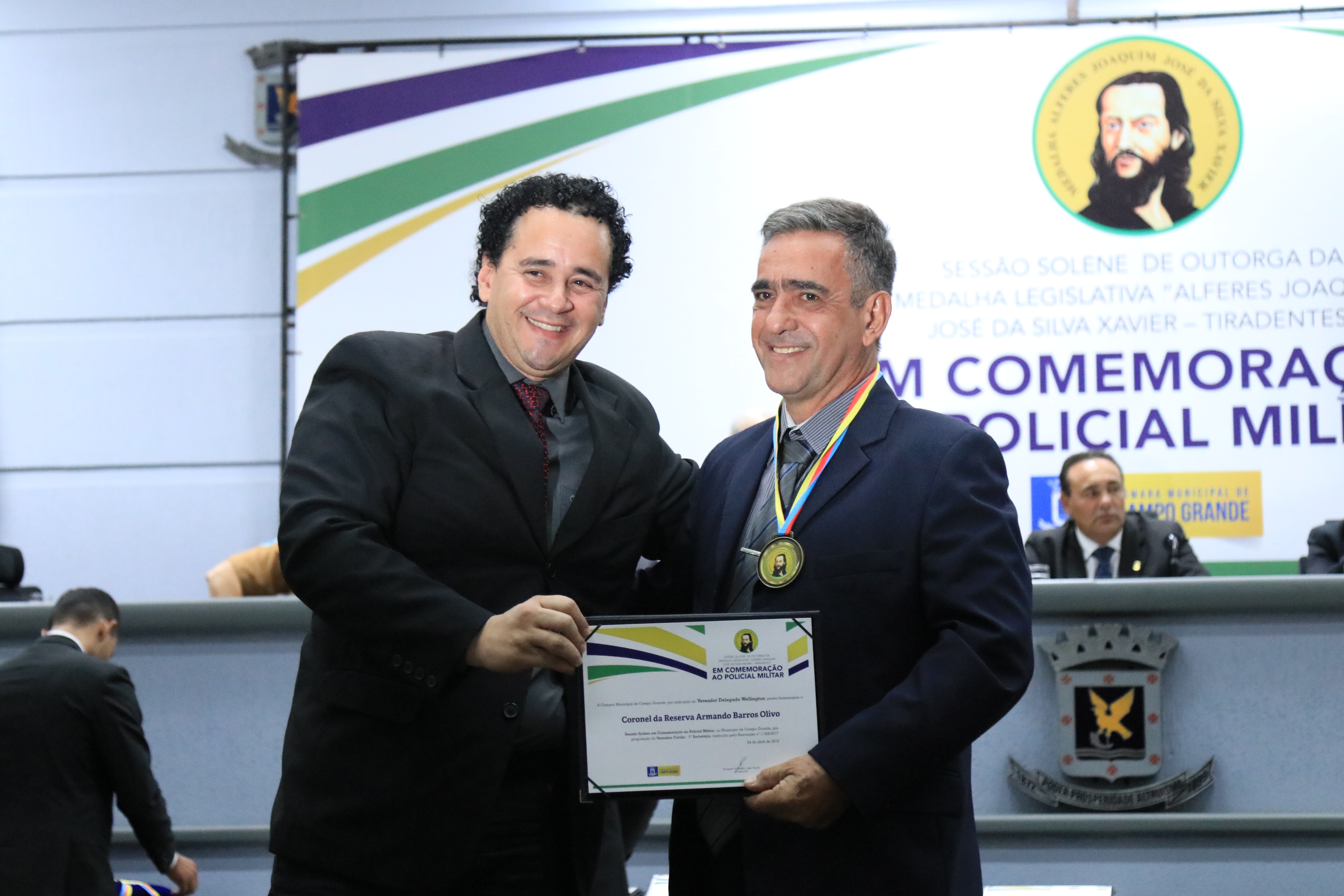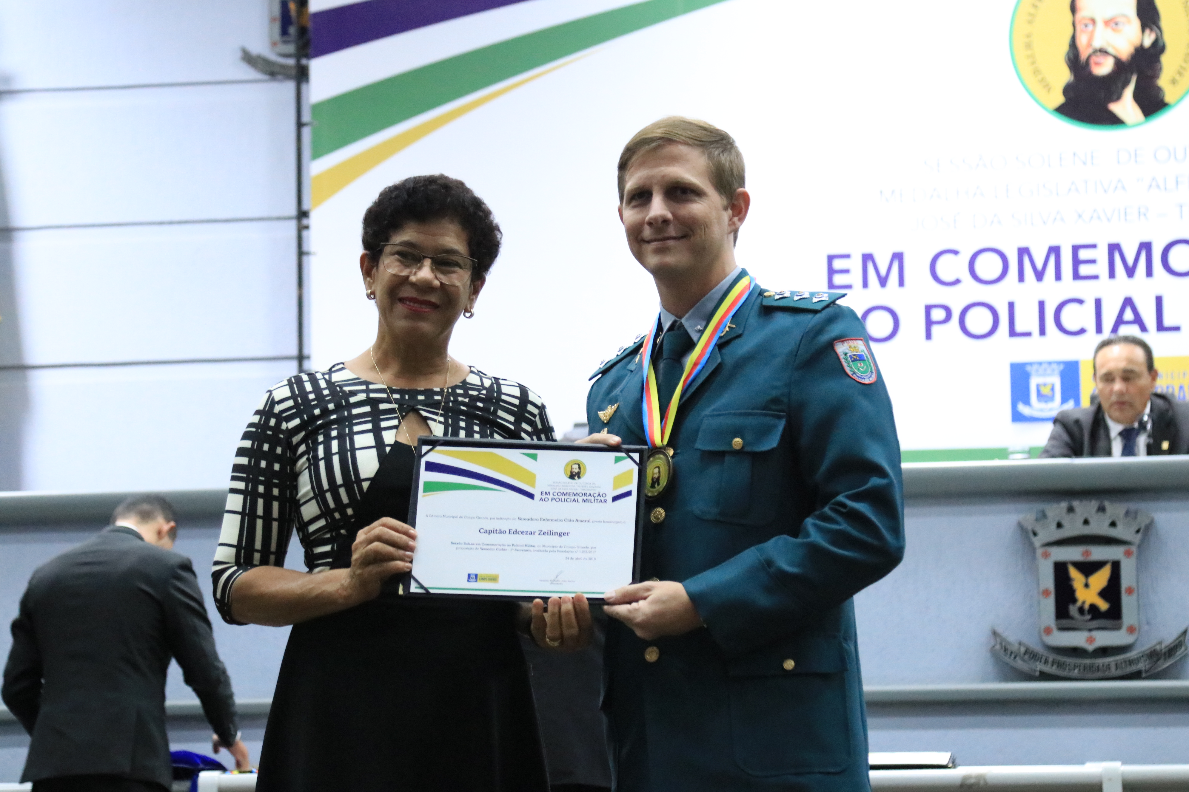 Campo Grande(MS) – A Câmara Municipal realizou na data de ontem (24/04) a sessão solene de Outorga da Medalha Legislativa “Alferes Joaquim José da Silva Xavier – TIRADENTES ” em homenagem aos Policiais Militares, instituída pela Resolução ° 1258/2017. O evento ocorreu no Plenário “Oliva Enciso”, na sede da Câmara e agraciou policiais militares que se destacaram no ano de 2018.