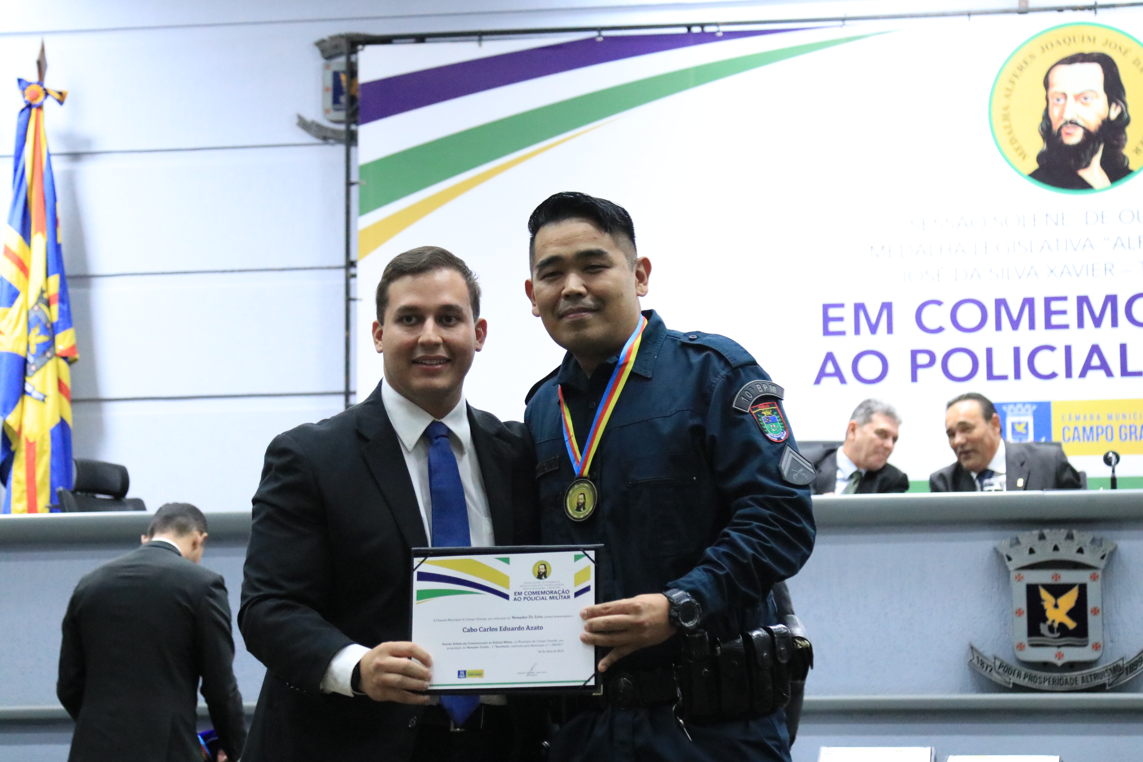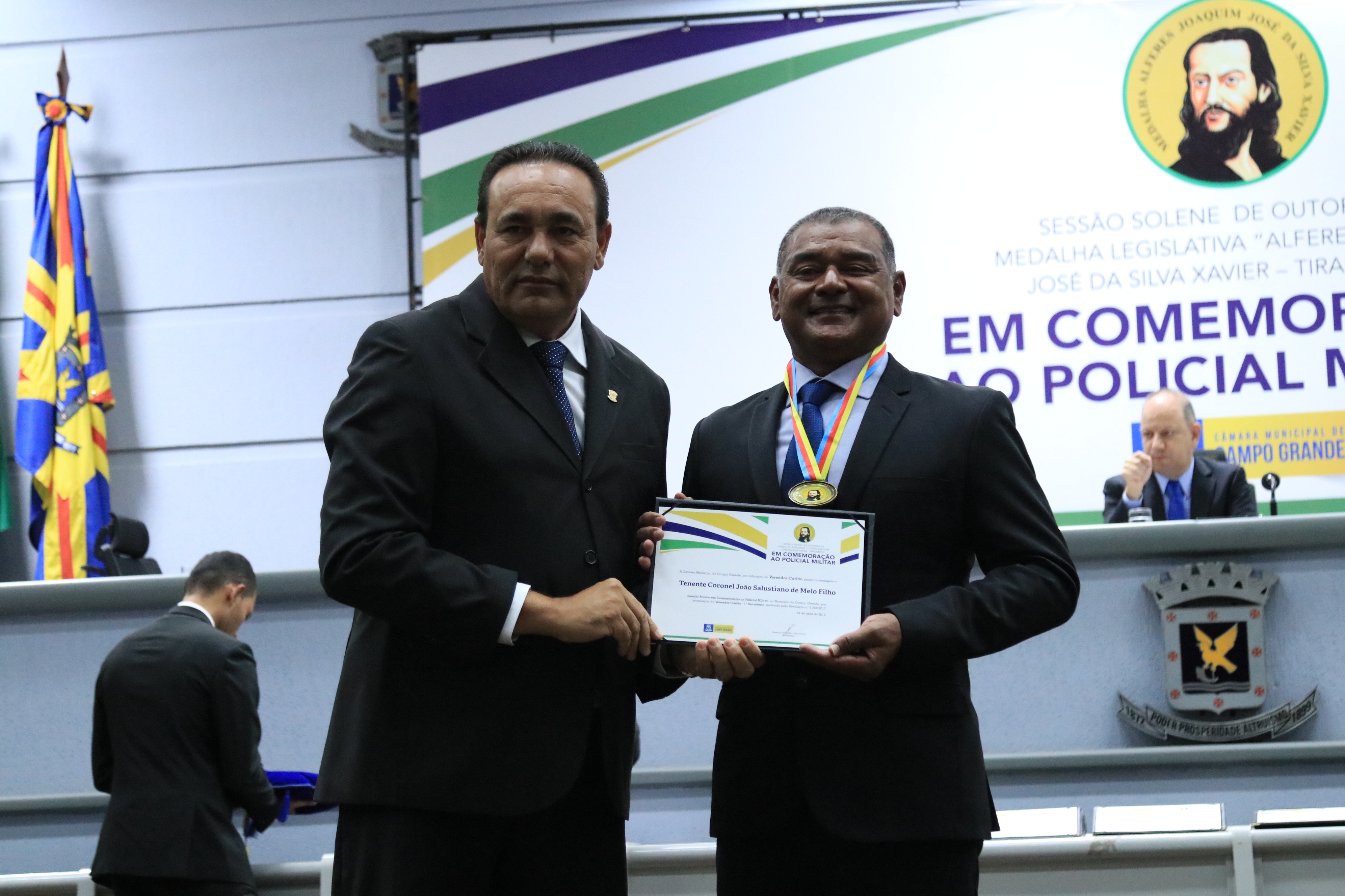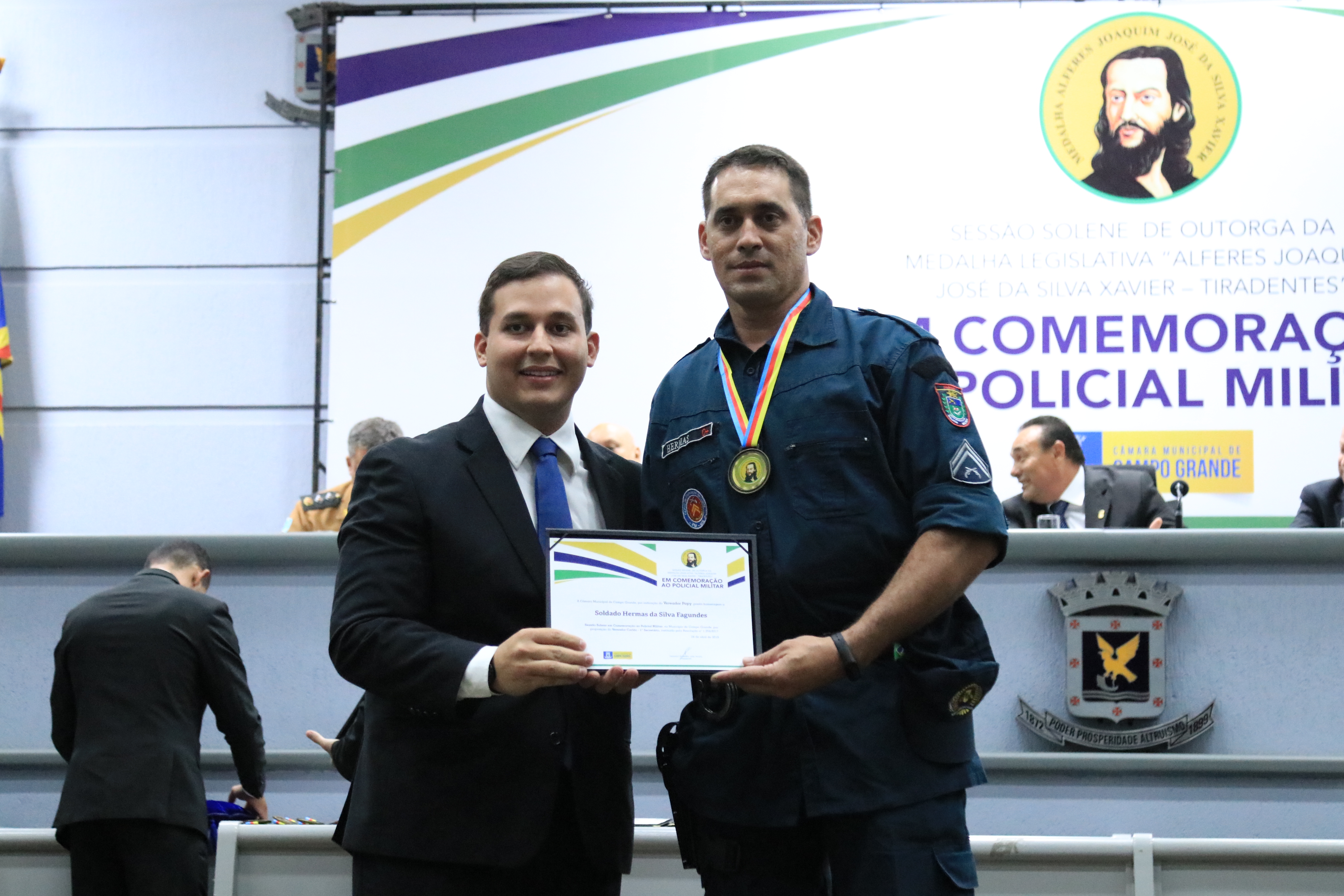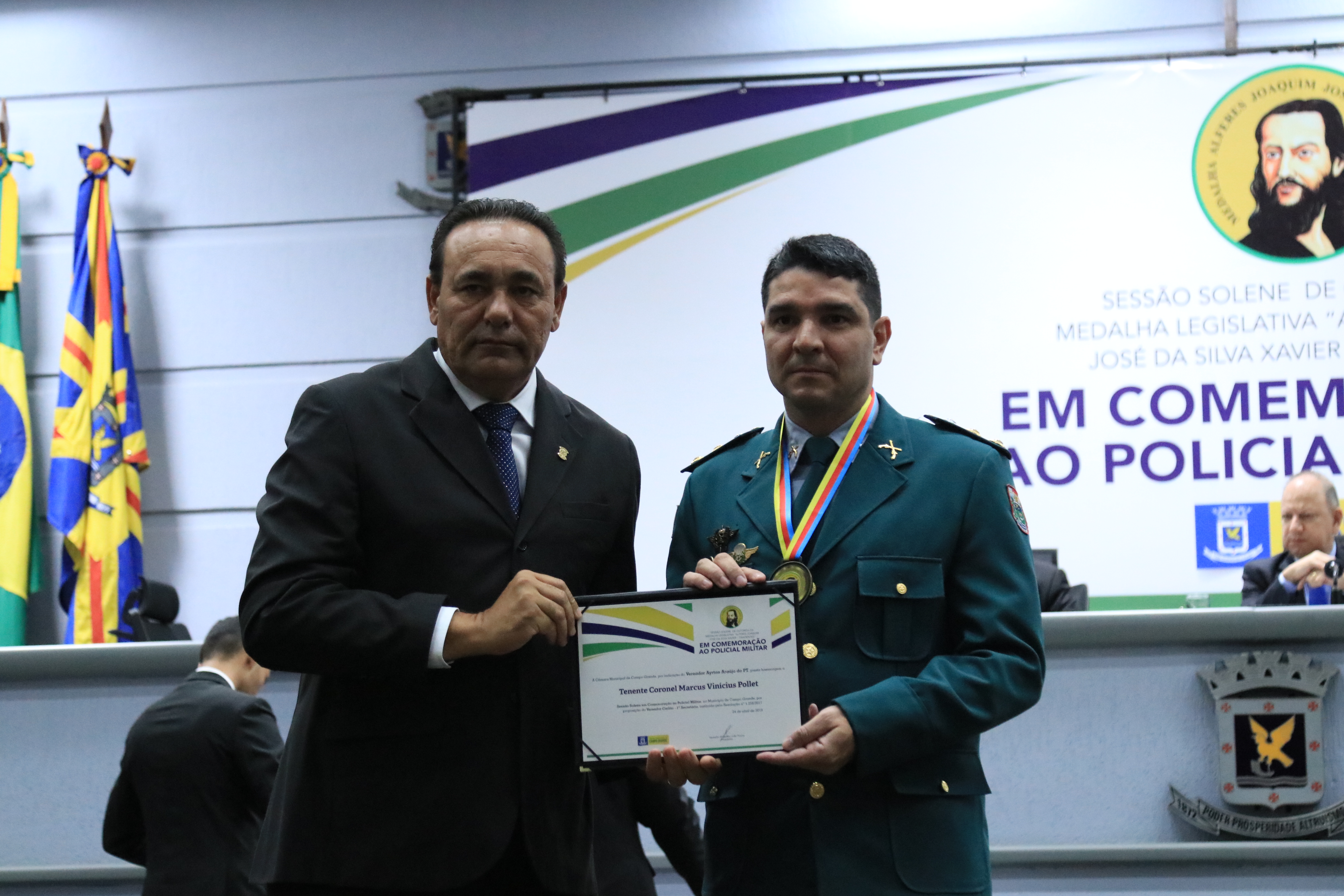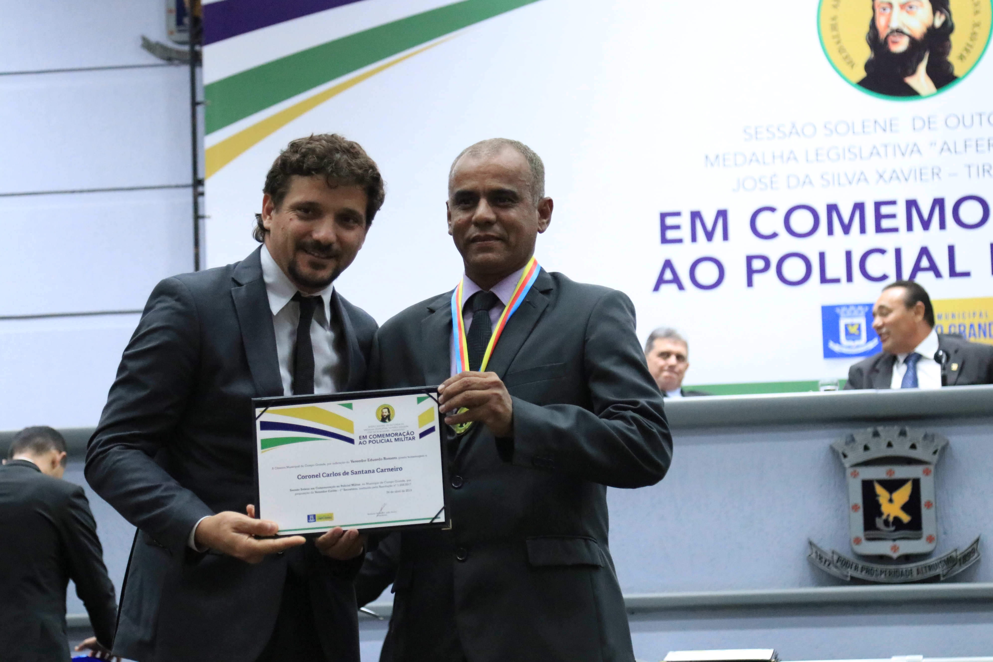 Campo Grande(MS) – A Câmara Municipal realizou na data de ontem (24/04) a sessão solene de Outorga da Medalha Legislativa “Alferes Joaquim José da Silva Xavier – TIRADENTES ” em homenagem aos Policiais Militares, instituída pela Resolução ° 1258/2017. O evento ocorreu no Plenário “Oliva Enciso”, na sede da Câmara e agraciou policiais militares que se destacaram no ano de 2018.
