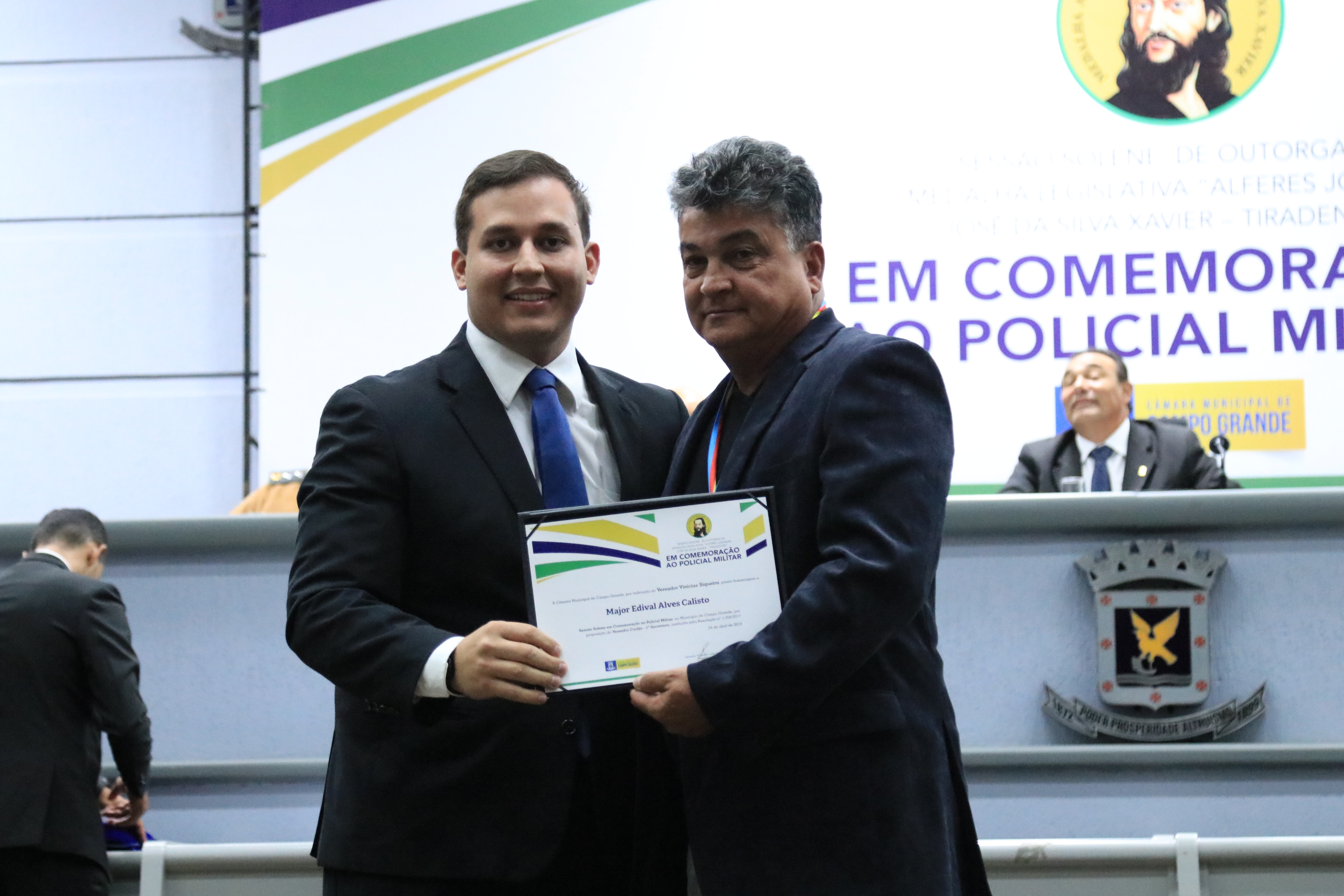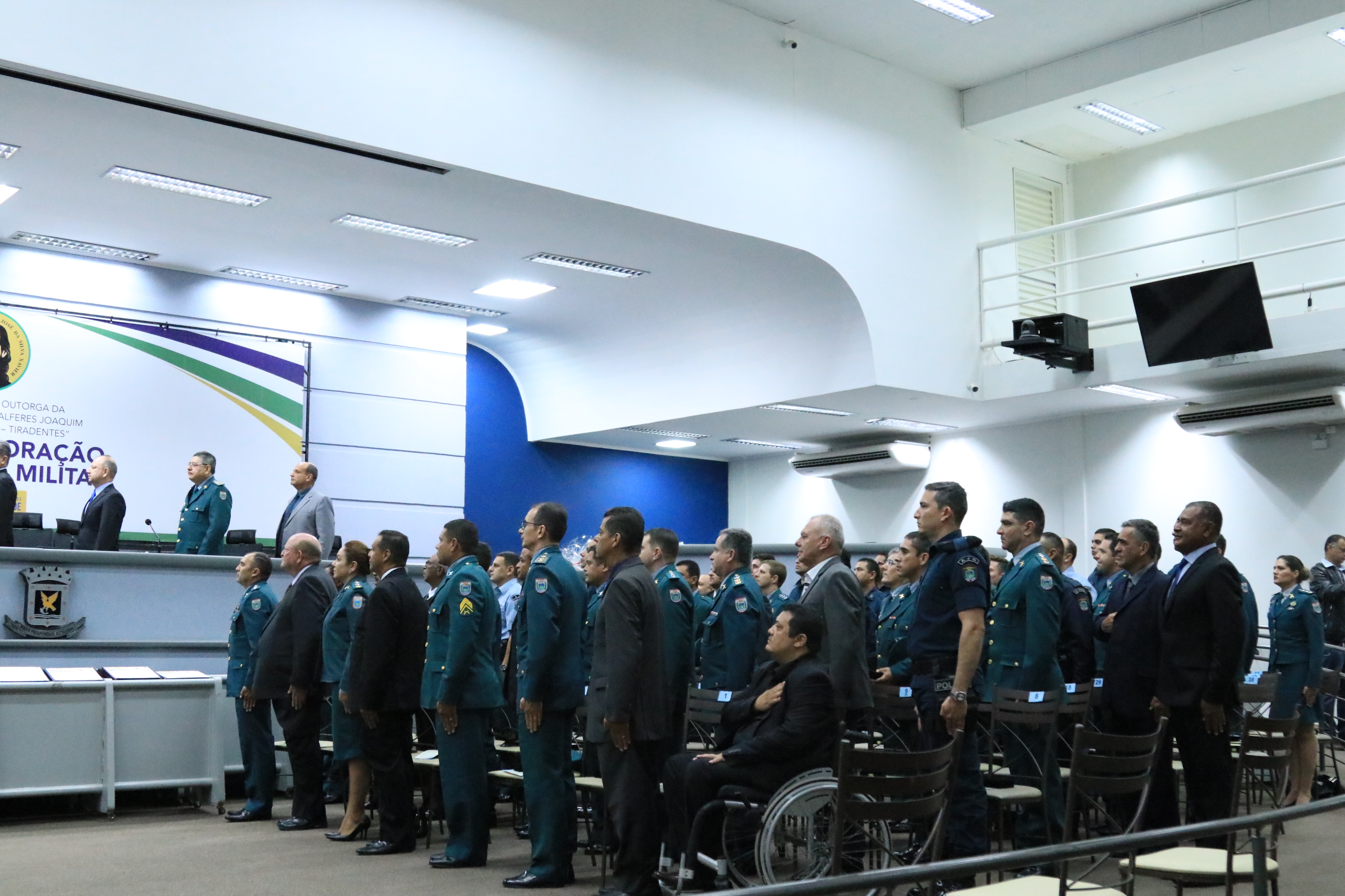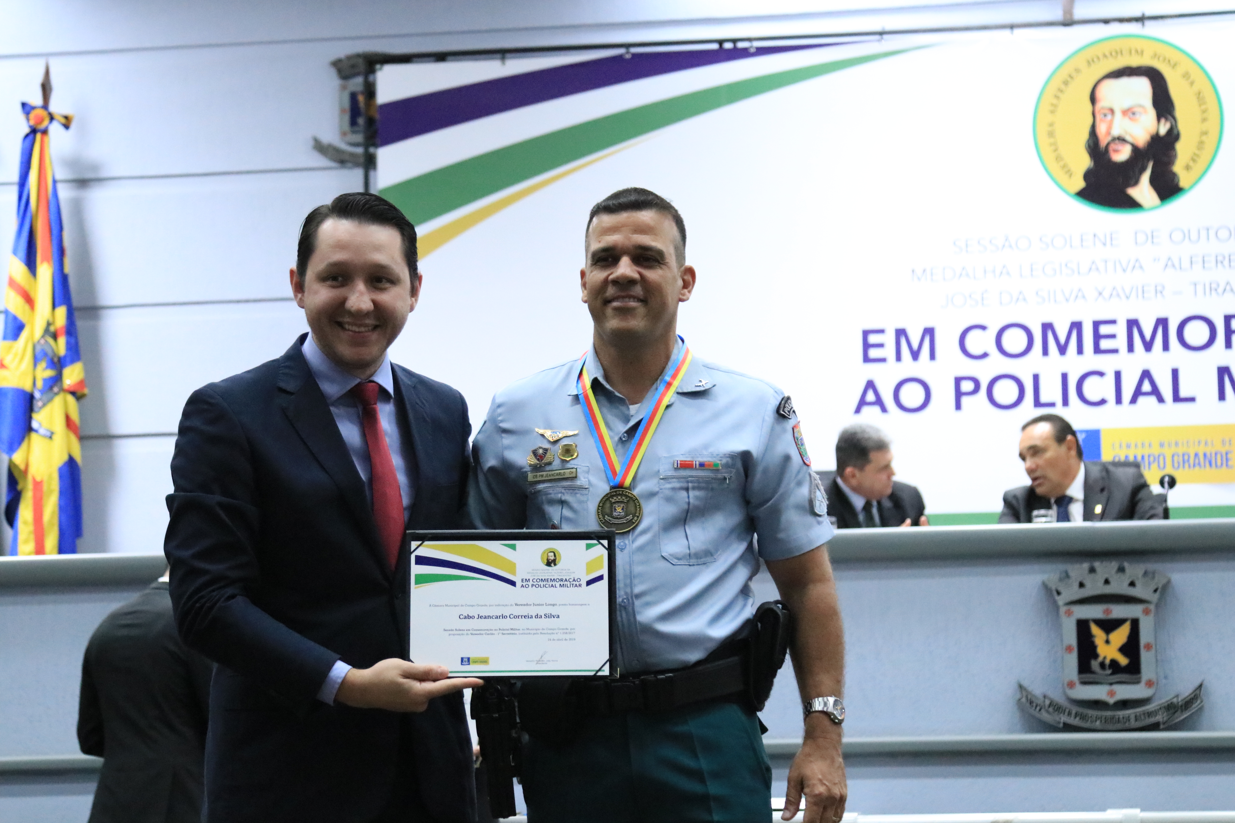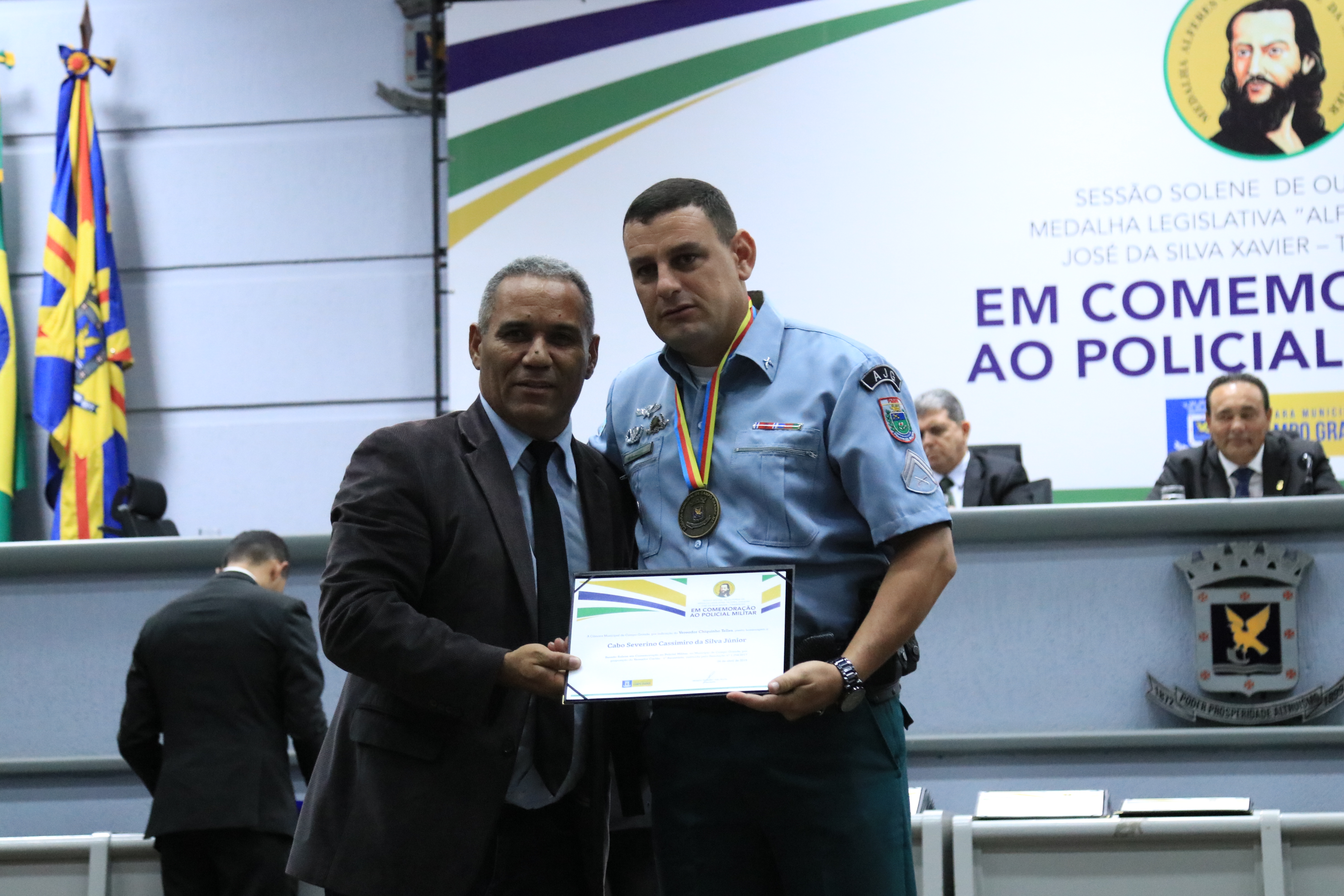Campo Grande(MS) – A Câmara Municipal realizou na data de ontem (24/04) a sessão solene de Outorga da Medalha Legislativa “Alferes Joaquim José da Silva Xavier – TIRADENTES ” em homenagem aos Policiais Militares, instituída pela Resolução ° 1258/2017. O evento ocorreu no Plenário “Oliva Enciso”, na sede da Câmara e agraciou policiais militares que se destacaram no ano de 2018.