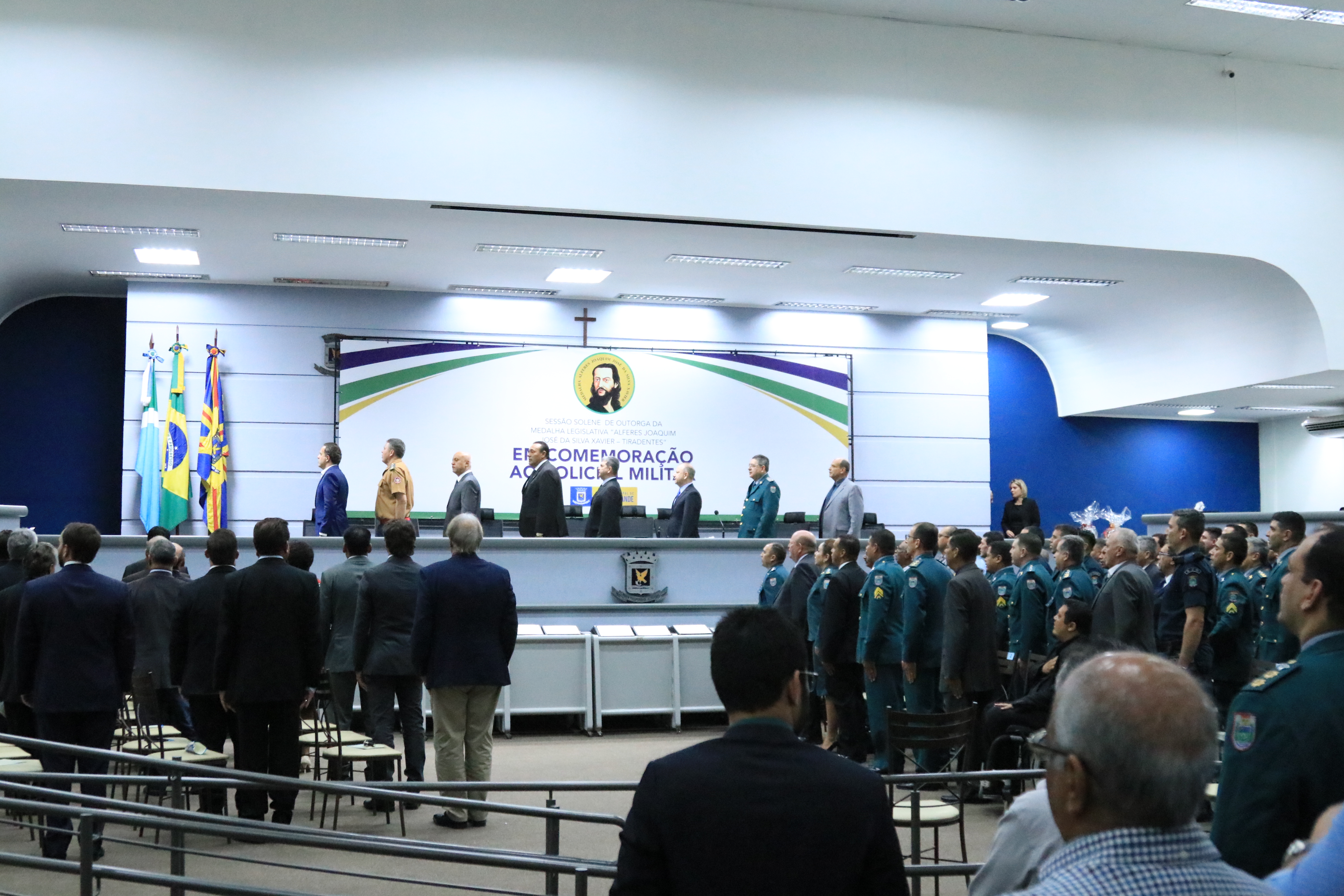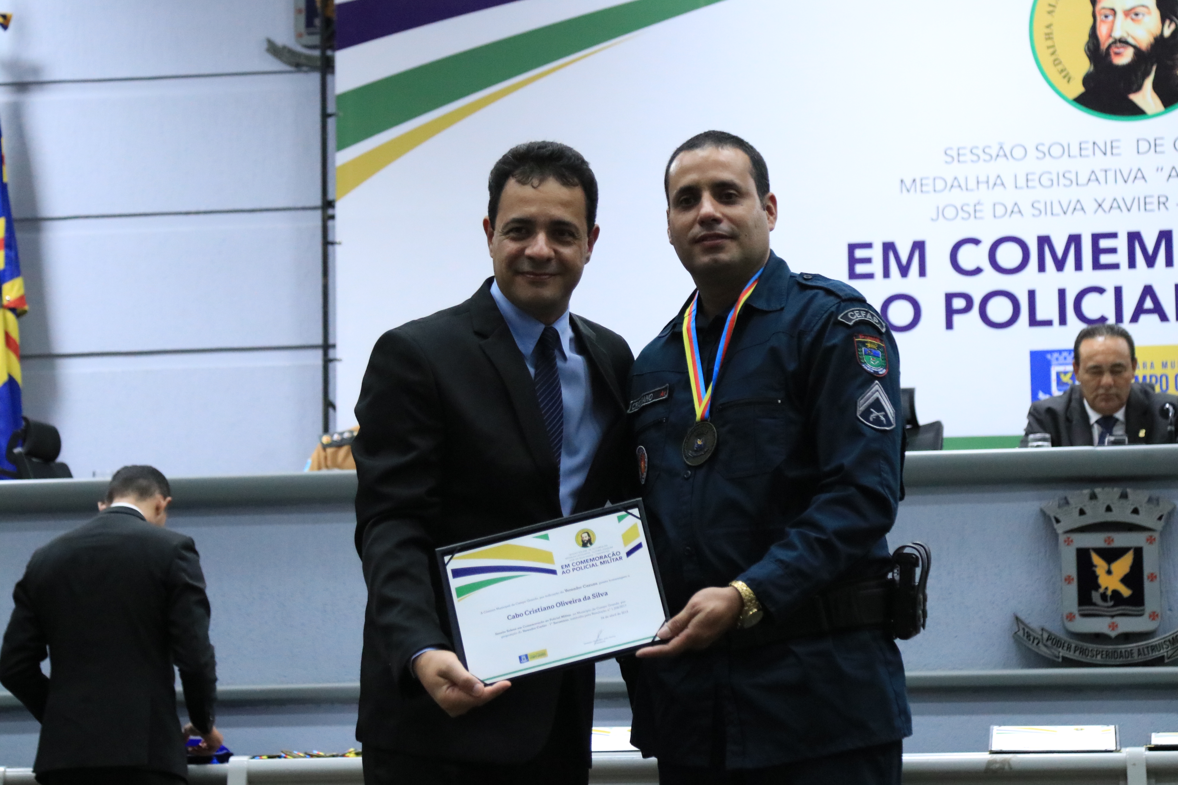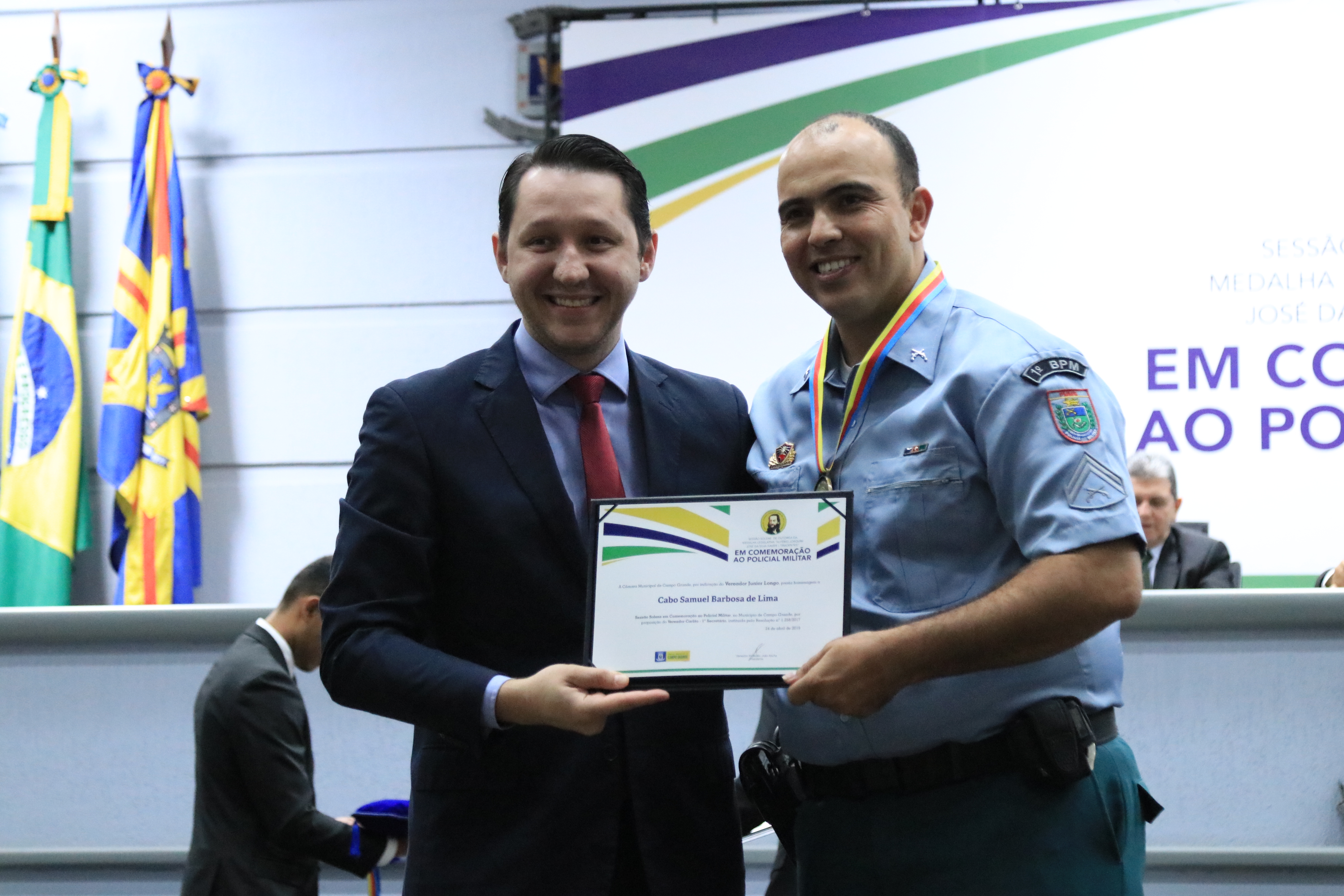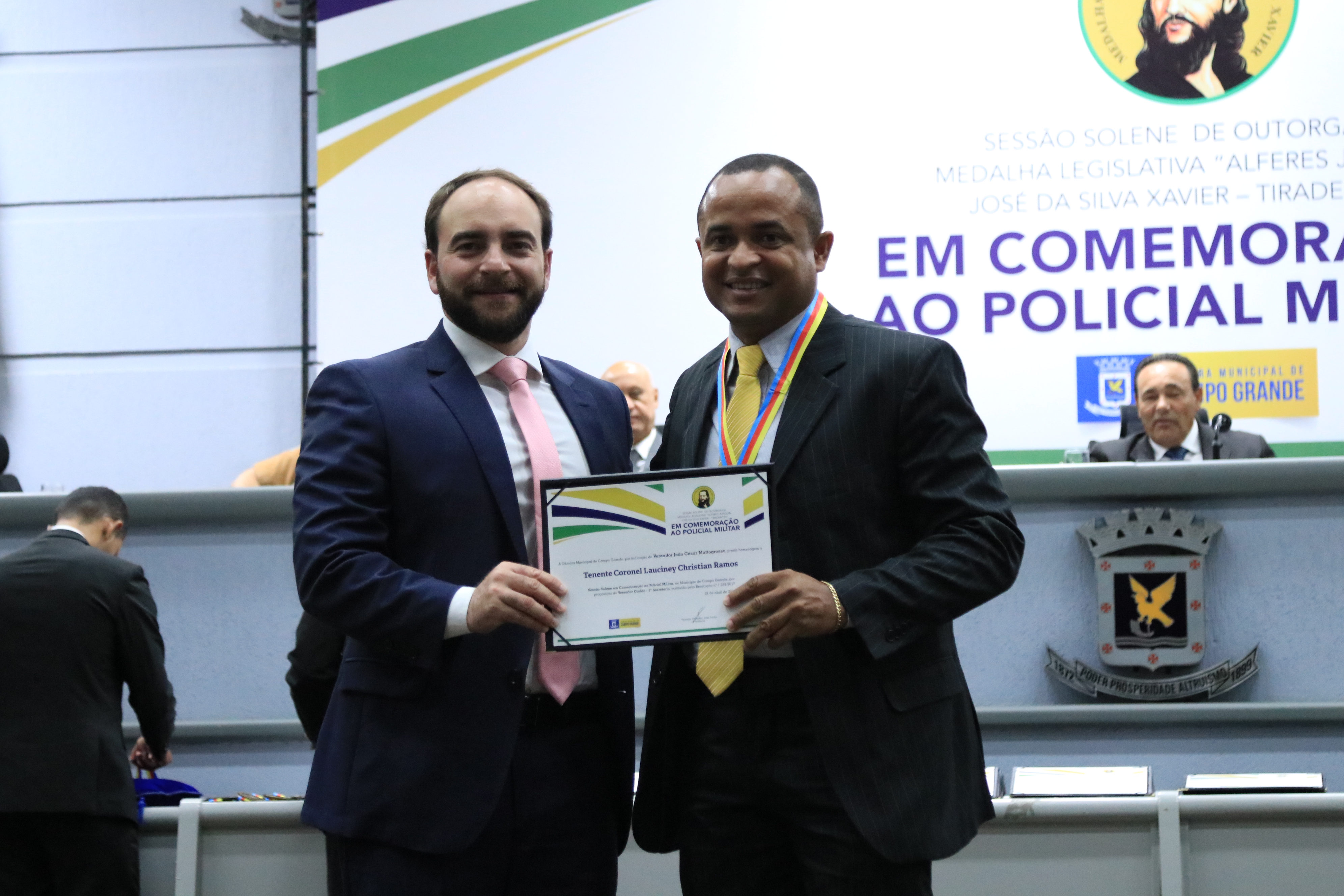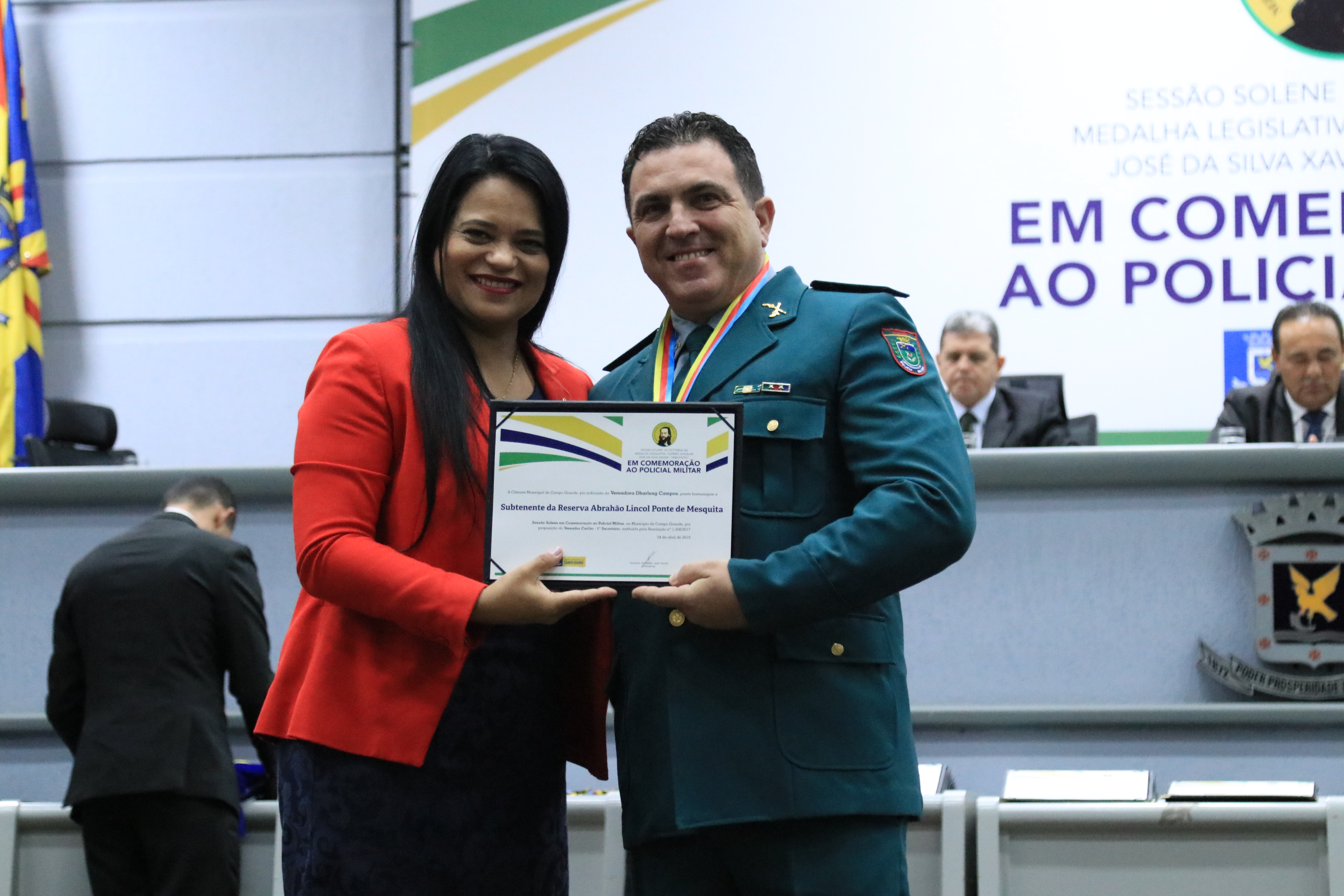 Campo Grande(MS) – A Câmara Municipal realizou na data de ontem (24/04) a sessão solene de Outorga da Medalha Legislativa “Alferes Joaquim José da Silva Xavier – TIRADENTES ” em homenagem aos Policiais Militares, instituída pela Resolução ° 1258/2017. O evento ocorreu no Plenário “Oliva Enciso”, na sede da Câmara e agraciou policiais militares que se destacaram no ano de 2018.