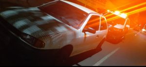 Ainda no  mesmo local próximo a este veículo estava outro com placas da nossa cidade,   o qual também foi checado e constatada ocorrência de furto/roubo no SIGO, também  foi observado um indivíduo sentado no banco do motorista do veiculo. Em entrevista, com o autor homem de 21(vinte e um)  anos o mesmo relatou  que teria  recebido o carro de outra pessoa, e o combinado seria levar 02(duas) mulheres que estavam em sua companhia até suas residências. Foi-lhe dada à voz de prisão por receptação.