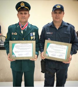 Coxim (MS): Os policiais militares, Sargento PM Denilson Antônio Caetano e o Cabo Lucas Martins Caetano foram homenageados na noite de ontem (18/02) com moção de congratulação em Rio Verde de MT/MS.