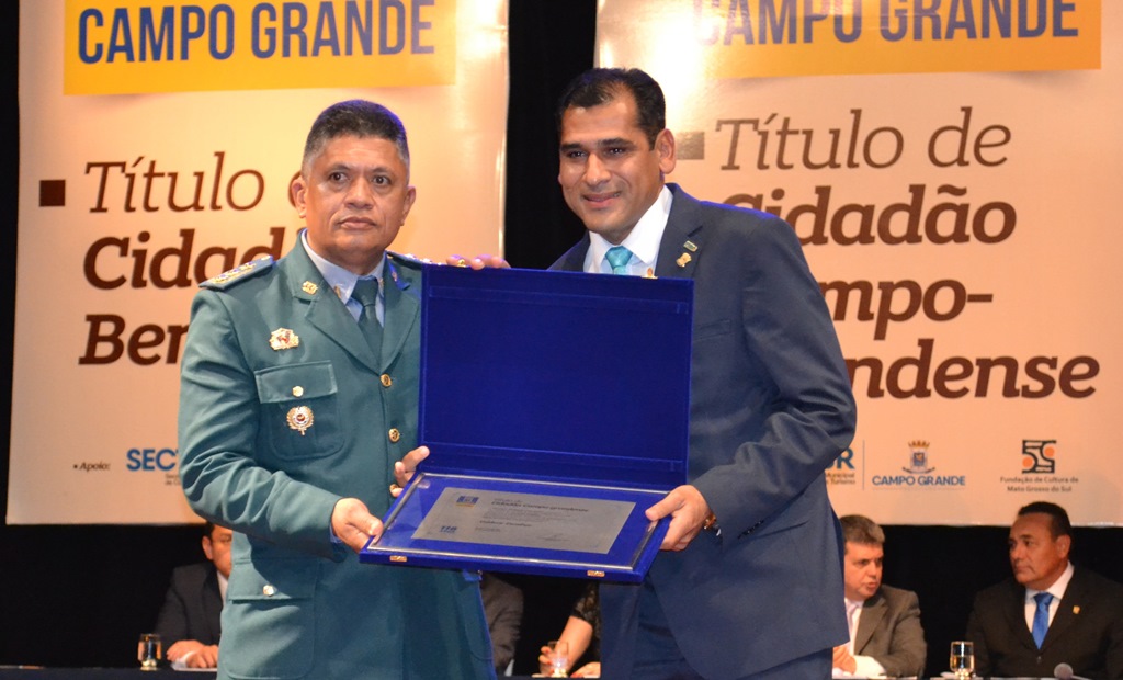 Entre os homenageados estão os Policiais Militares que tiveram seu reconhecimento aos relevantes serviços prestados em prol do desenvolvimento da cidade e da melhoria da qualidade de vida do povo campo-grandense.