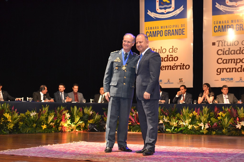 O Comandante-Geral esteve presente no evento e parabenizou os agraciados, dizendo estar muito feliz pelos policiais militares que foram homenageados e agraciados com o título de Cidadão Campo-Grandense.