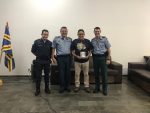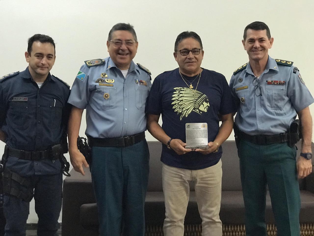 Transferido para reserva remunerada, o ex-comandante do 1ºBPM, Tenente-Coronel Mário Angelo Ajala, também recebeu uma homenagem das mãos do Comandante-Geral, em nome de toda a tropa.