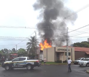 Durante policiamento preventivo e ostensivo, uma guarnição de trânsito avistou densa fumaça no céu e, devido ao mal tempo, deslocaram para avaliar a situação. No local, foi verificado que uma residência estava tomada pelo fogo e, imediatamente, o Corpo de Bombeiros Militar foi acionado via rede rádio.