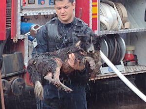 Naviraí (MS) – Na manhã de domingo (13/03), por volta das 08h40min, policiais militares do 12º Batalhão de Polícia Militar de Naviraí, resgataram dois cachorros de uma casa em chamas.