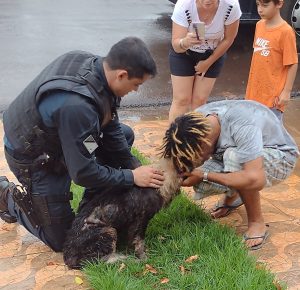 Outro cachorro foi visto em meio as chamas e o componente do Corpo de Bombeiros jogou água e aliviou a queimadura, mas não foi possível o resgate devido ao fogo intenso. Logo após a chama diminuir, um dos policiais militares entrou no imóvel e conseguiu localizar o animal agonizando dentro de um buraco que se formou em uma parede. Após resgatá-lo, um veterinário se dispôs a atender o animal imediatamente.