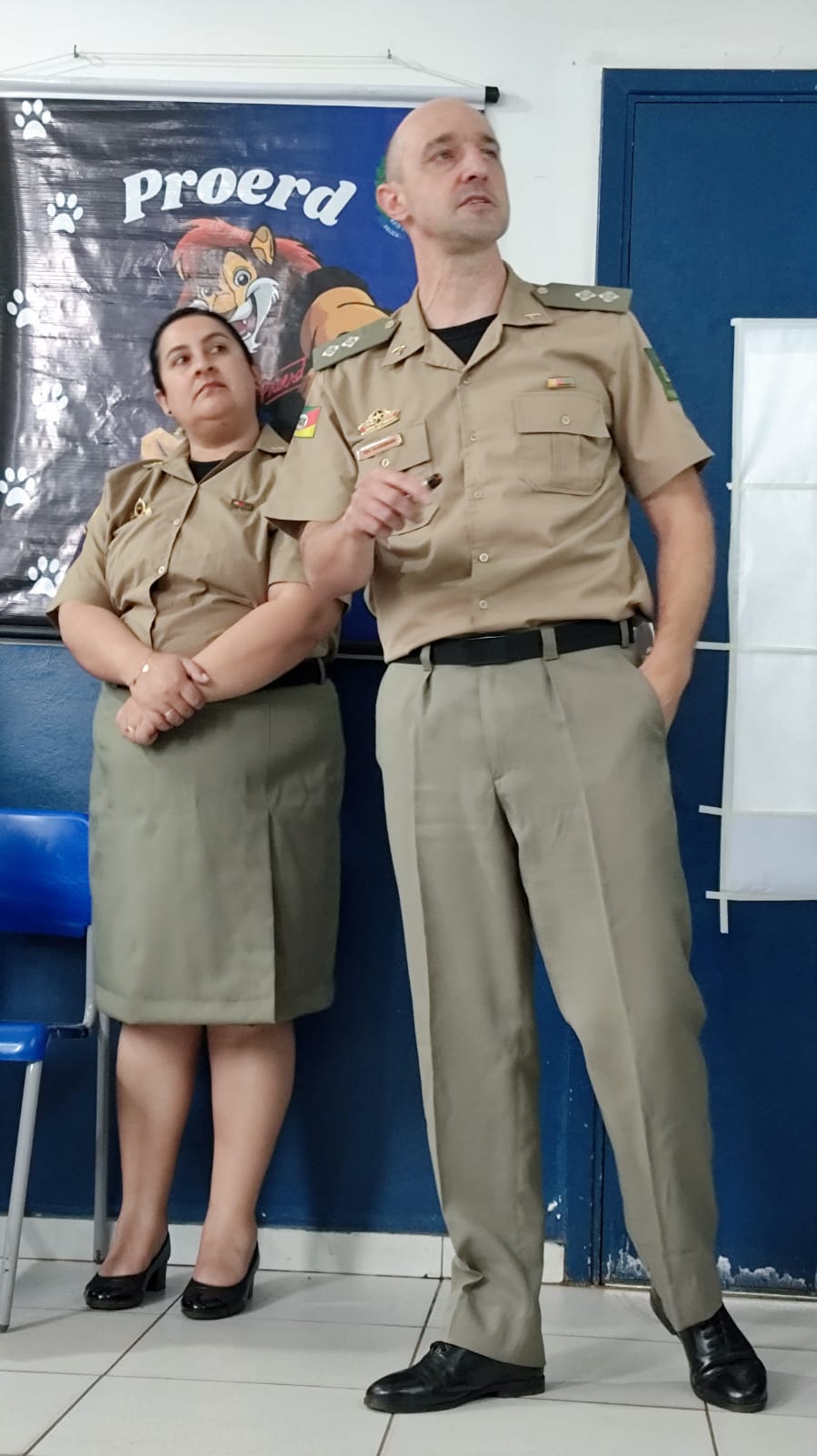 Em conformidade com as políticas e os procedimentos do DARE América, a Câmara Técnica do Proerd no Brasil, presidida em Santa Catarina, designou os policiais da Brigada Militar do Rio Grande do Sul, o Tenente Edson André Schneider Glassman (Facilitador do Curso) e a soldado Cristina da Silva Ferreira (Pedagoga Proerd) que atuarão nesse curso que se inicia, como facilitador e pedagoga, respectivamente.