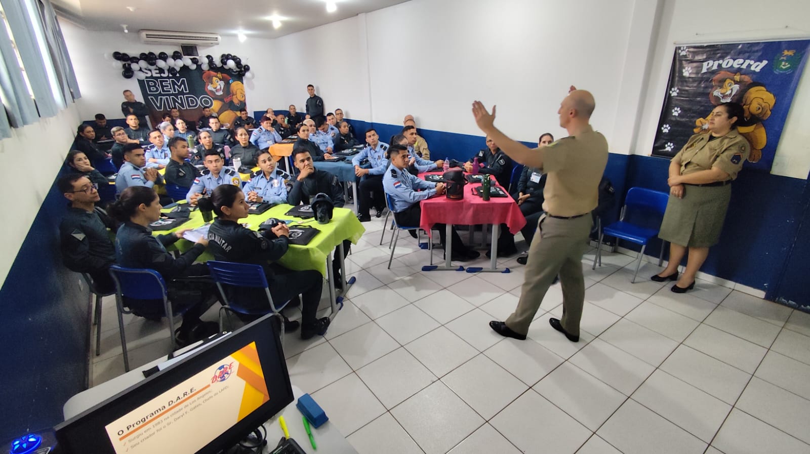 Campo Grande (MS): A Polícia Militar de Mato Grosso do Sul (PMMS), por intermédio da Diretoria de Polícia Comunitária e Direitos Humanos (DPCOM) e por meio do Programa Educacional de Resistência às Drogas e à Violência (Proerd), realizou a solenidade de abertura do 2° Curso Internacional de Formação de Instrutores do Programa Educacional de Resistência às Drogas e à Violência (PROERD).