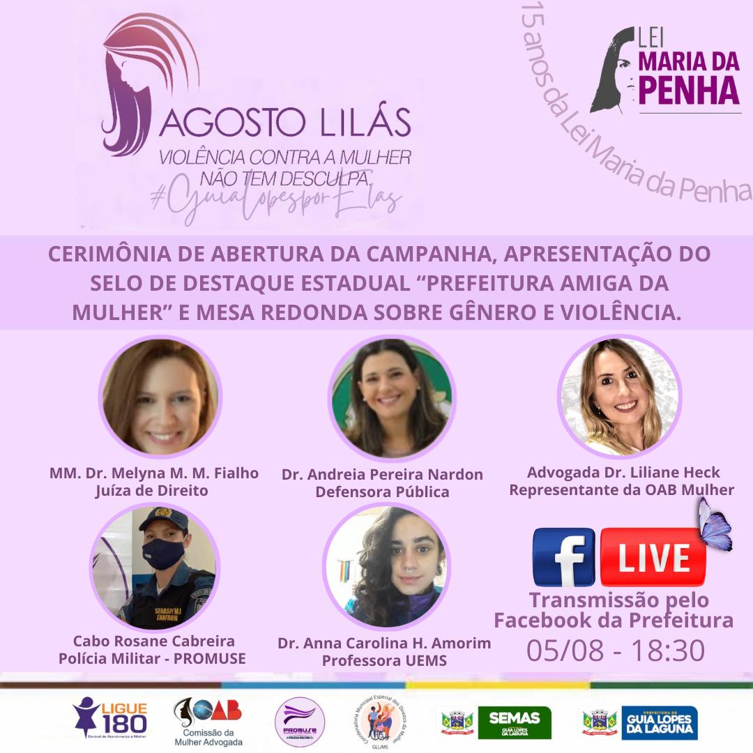 A Campanha Agosto Lilás – serve para conscientizar a população da importância do combate à violência contra mulher. (Lei 11.340/2006 – Maria da Penha).
