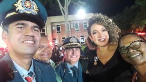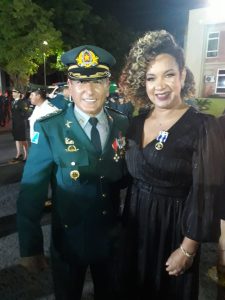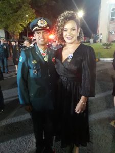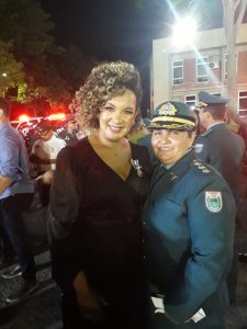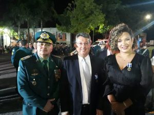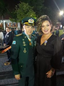 Também esteve presente na Solenidade o Comandante do CPA-2, Coronel Gil Alexandre da Rocha, que parabenizou a Primeira Dama pela comenda recebida.