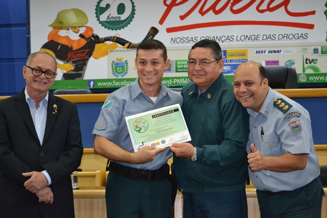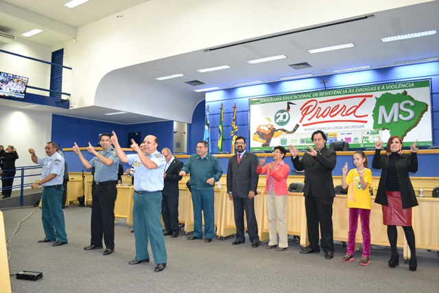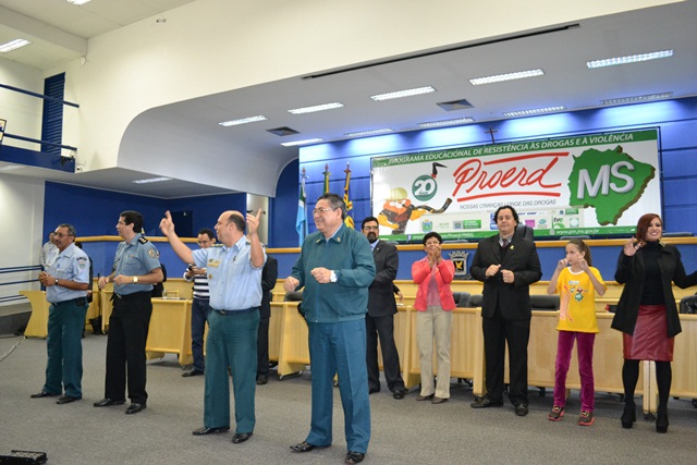 Durante a semana antidrogas que acontece entre os dias 19 e 25 de junho, a Câmara Municipal de Campo Grande recebeu o evento em que foram homenageadas autoridades, instrutores do Proerd e outros civis. Estavam entre os homenageados o secretário Estadual de Justiça e Segurança Pública, José Carlos Barbosa, o diretor-presidente do Detran (Departamento Estadual de Trânsito), Gerson Claro, a gerente de Prevenção à violência, Susana Martins, e a diretora da Escola Municipal Antônio José Paniago, Maria Lúcia de Fátima de Oliveira.
