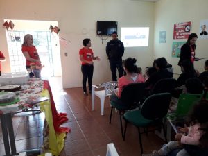 3ª CIPM Amambai – Na última quarta-feira (07), a equipe técnica do Programa Mulher Segura da 3ª CIPM participou de uma roda de conversa com as mulheres assistidas pela Secretaria de Assistência Social (CRAS e CREAS) de Coronel Sapucaia. O evento teve em parceria com a Coordenadoria de Politicas Públicas para as Mulheres do município. Na ocasião, a Polícia Militar abordou os tipos de violência contra mulher bem como a aplicabilidade da lei e as garantias previstas, como as medidas protetivas de urgência que afastam o agressor e são fiscalizadas pela PM. O evento fez parte da campanha Agosto Lilás.