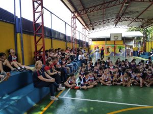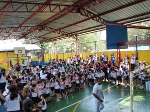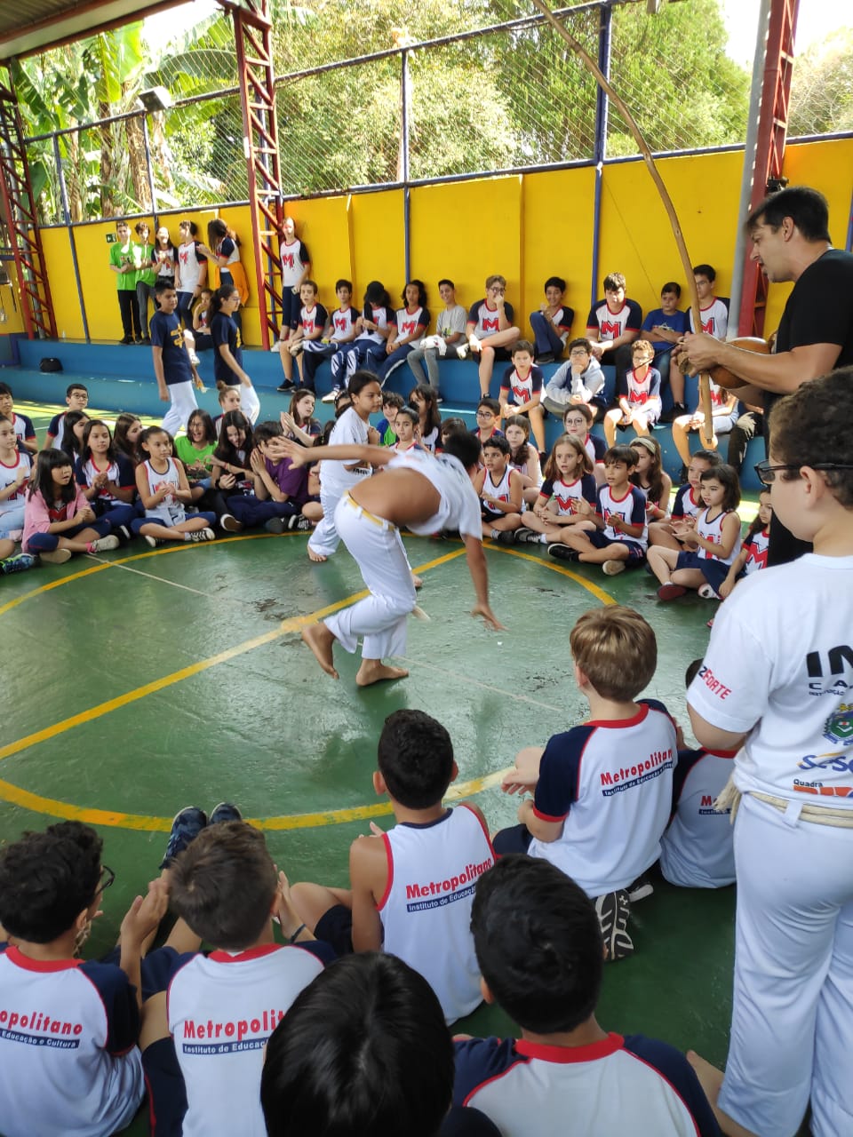 Alunos do Projeto FAZENDO A DIFERENÇA tiveram uma rotina diferente na manhã do dia 04 de setembro. As crianças saíram do CEFAP para uma atividade extra: foram convidados a apresentarem a Roda de Capoeira no Colégio Quintal Metropolitano.