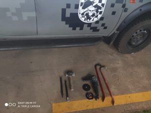 Durante as buscas também foi encontrado um veículo onde em seu interior encontrava-se ferramentas como esmerilhadeira e pé de cabra.